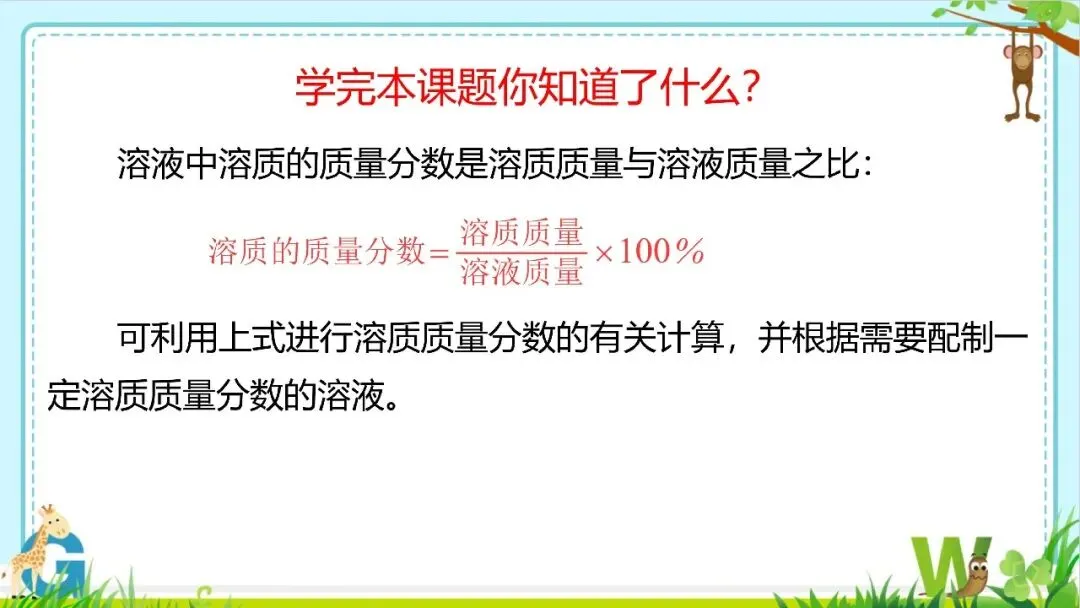 【希沃课件】人教版九年级化学第9单元课题3溶质的质量分数教学课件欣赏!