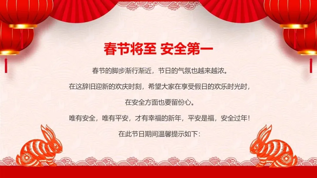 春节的脚步渐行渐近,节日的气氛也越来越浓。在这辞旧迎新的欢庆时刻,希望大家在享受假日的欢乐时光时,在安全方面也要留份心。