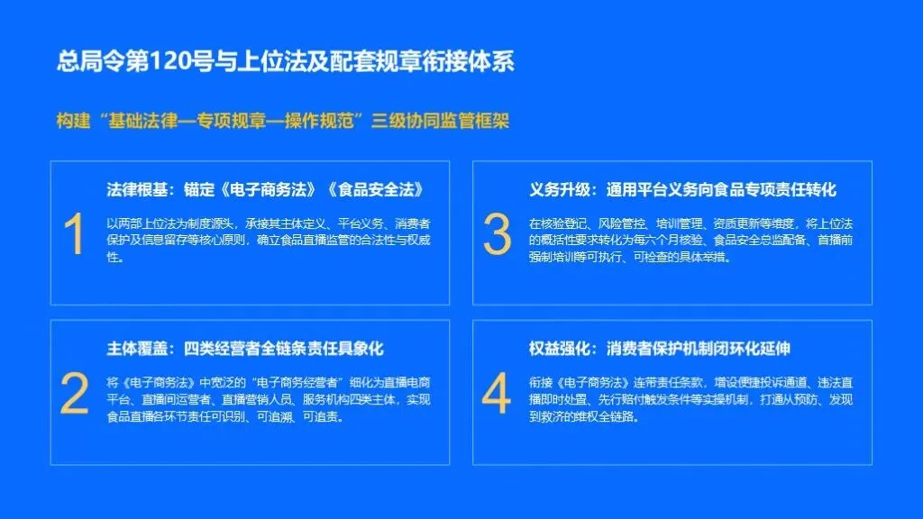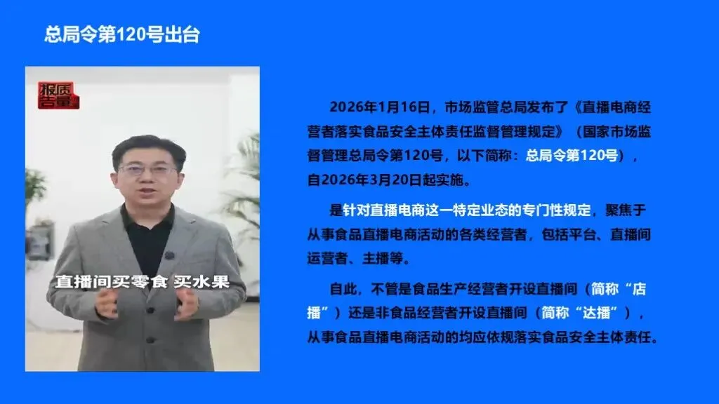 总局令第120号的出台并非偶然,而是立足当前直播电商食品经营现状、回应行业突出问题、衔接上位法要求的重要监管举措,对规范行业秩序、保障食品安全、维护消费者权益具有里程碑式的意义。