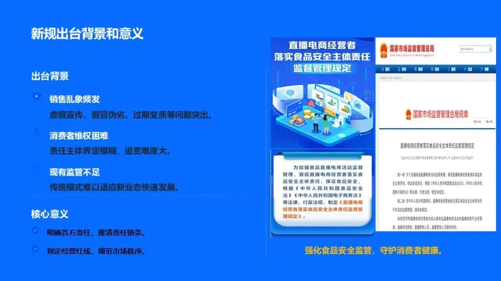 要解读《直播电商经营者落实食品安全主体责任监督管理规定》(120号令),首先要了解它是怎么来的,有何要求,有何意义?