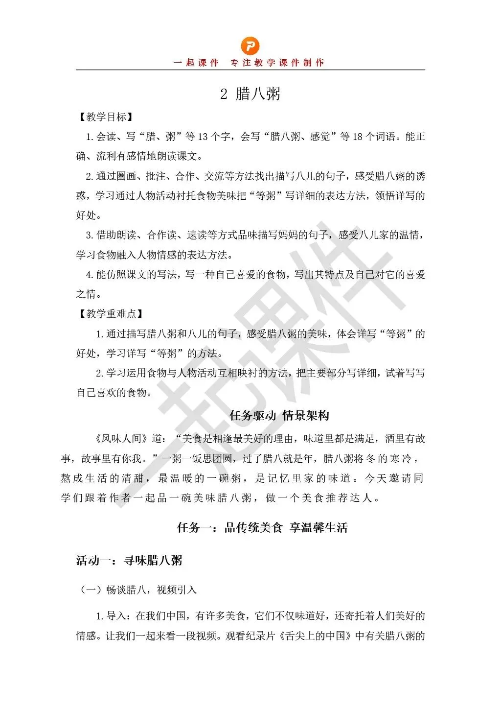部编版小学语文六下第一单元《腊八粥》课件+教学设计