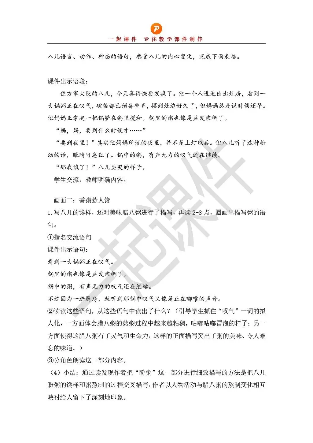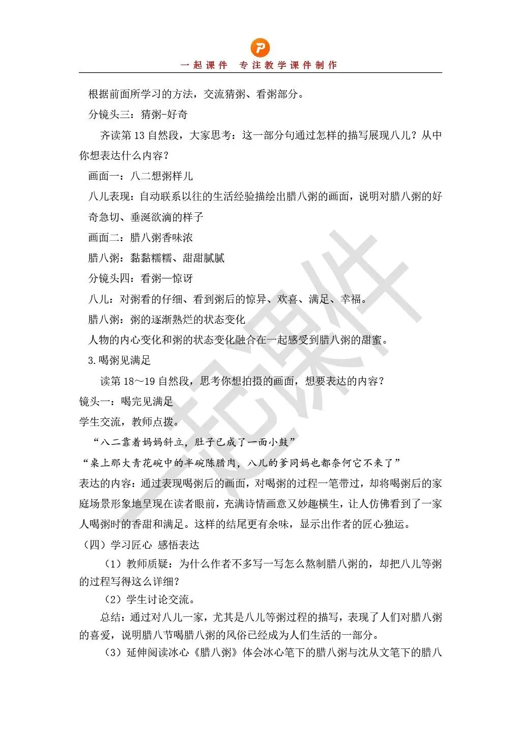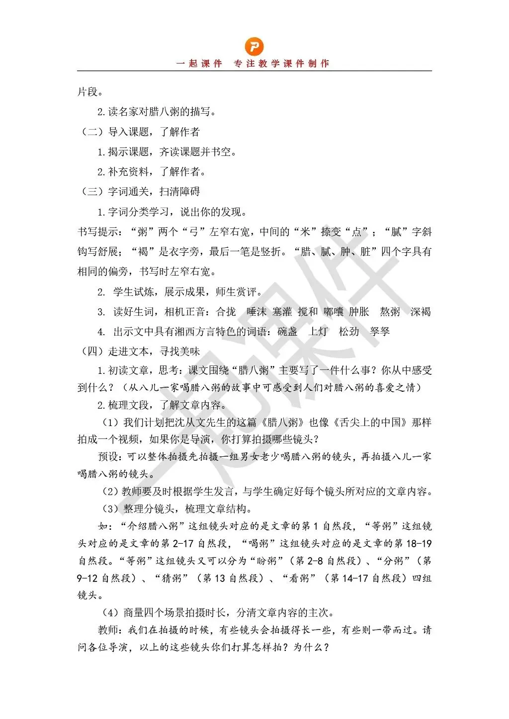 >部编版小学语文六下第一单元《腊八粥》课件+教学设计