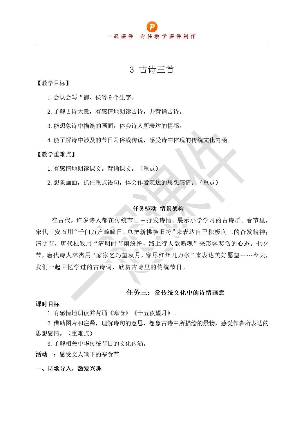 >部编版小学语文六下第一单元《古诗三首》课件+教学设计