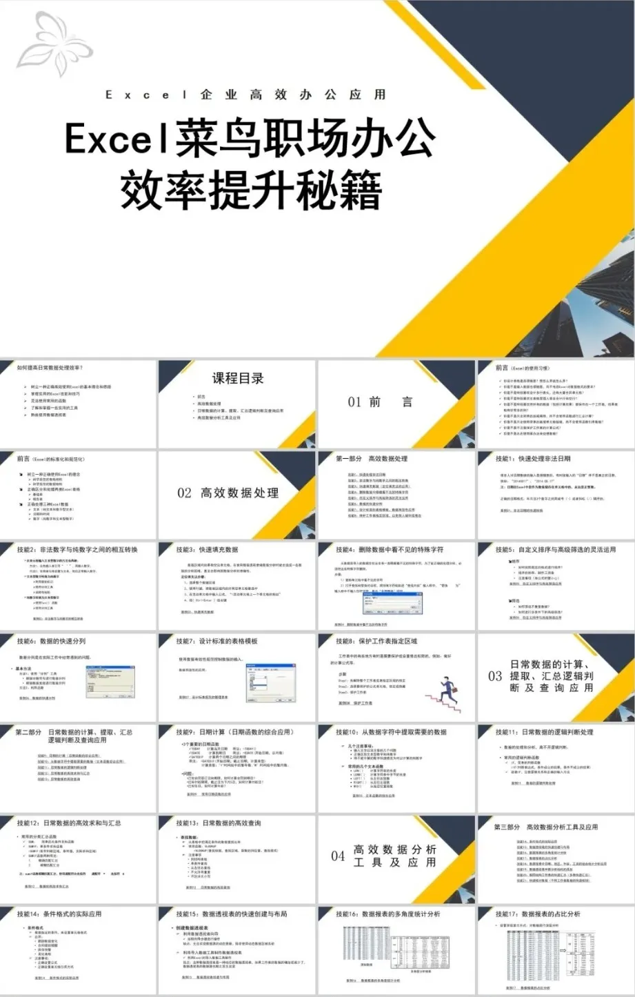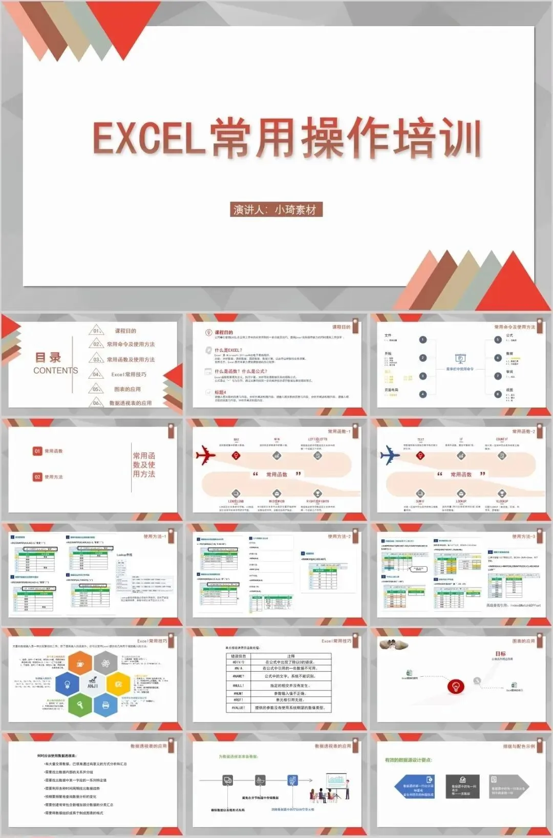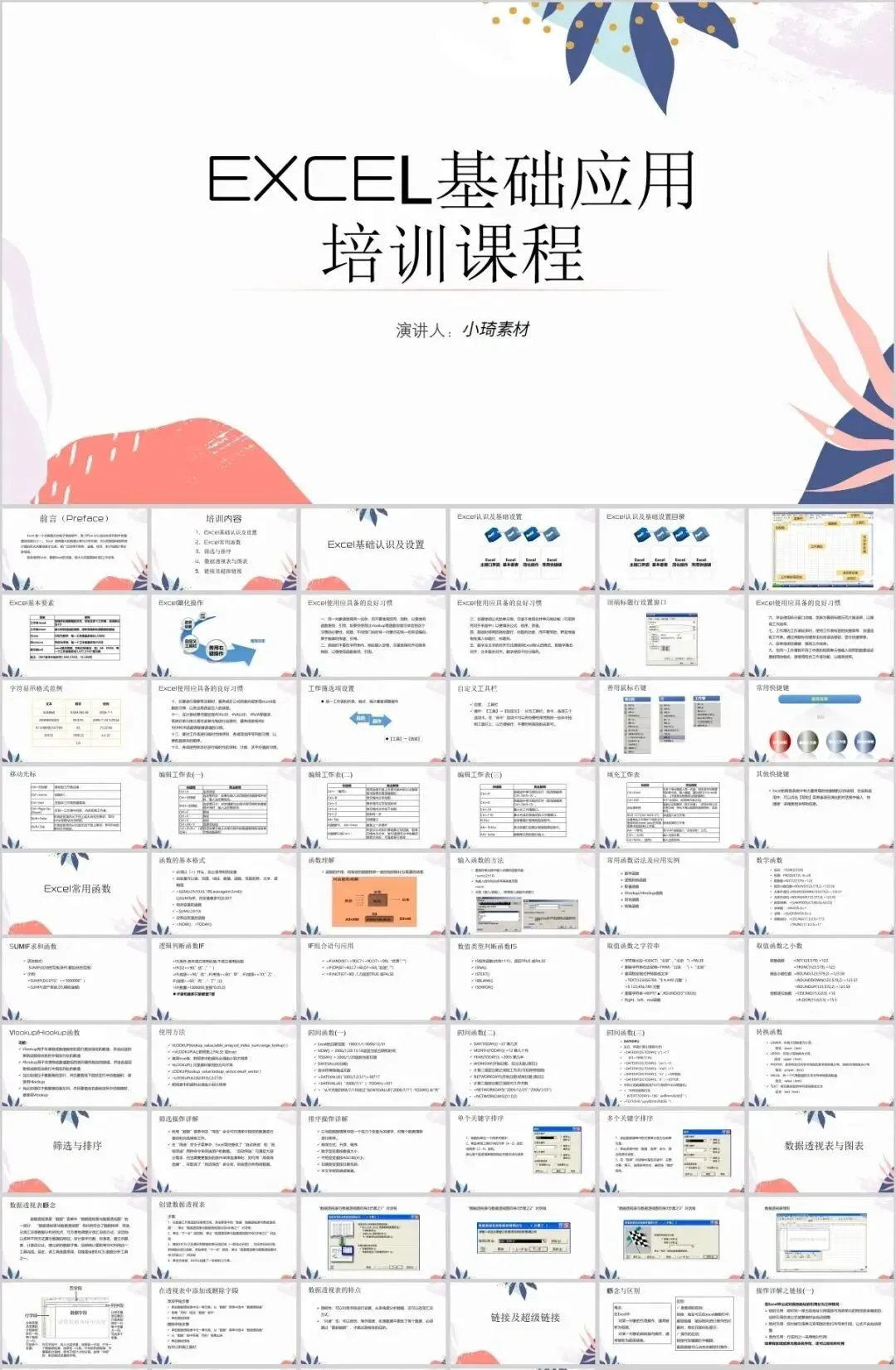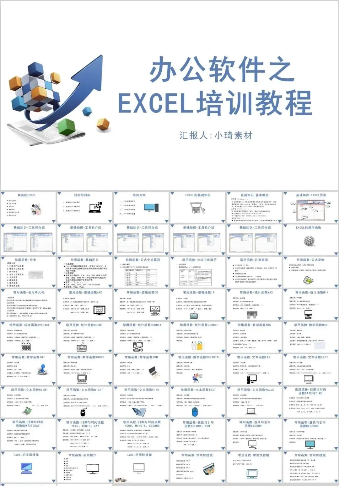 但是那个资料如果作为公司培训的话,就有点不合适了,所以这里小琦精心整理了这36套PPT格式的Excel培训课件,用PPT的格式去讲Excel是不是超nice的 !