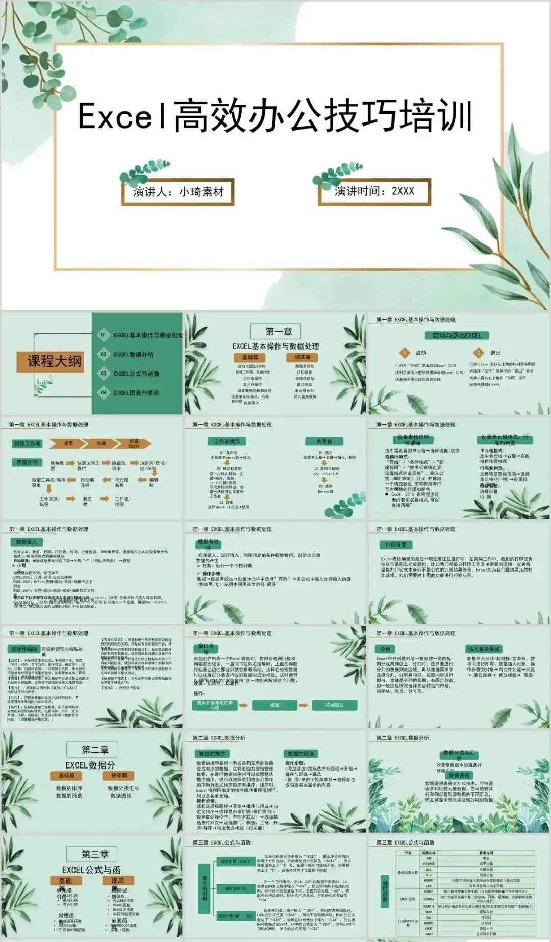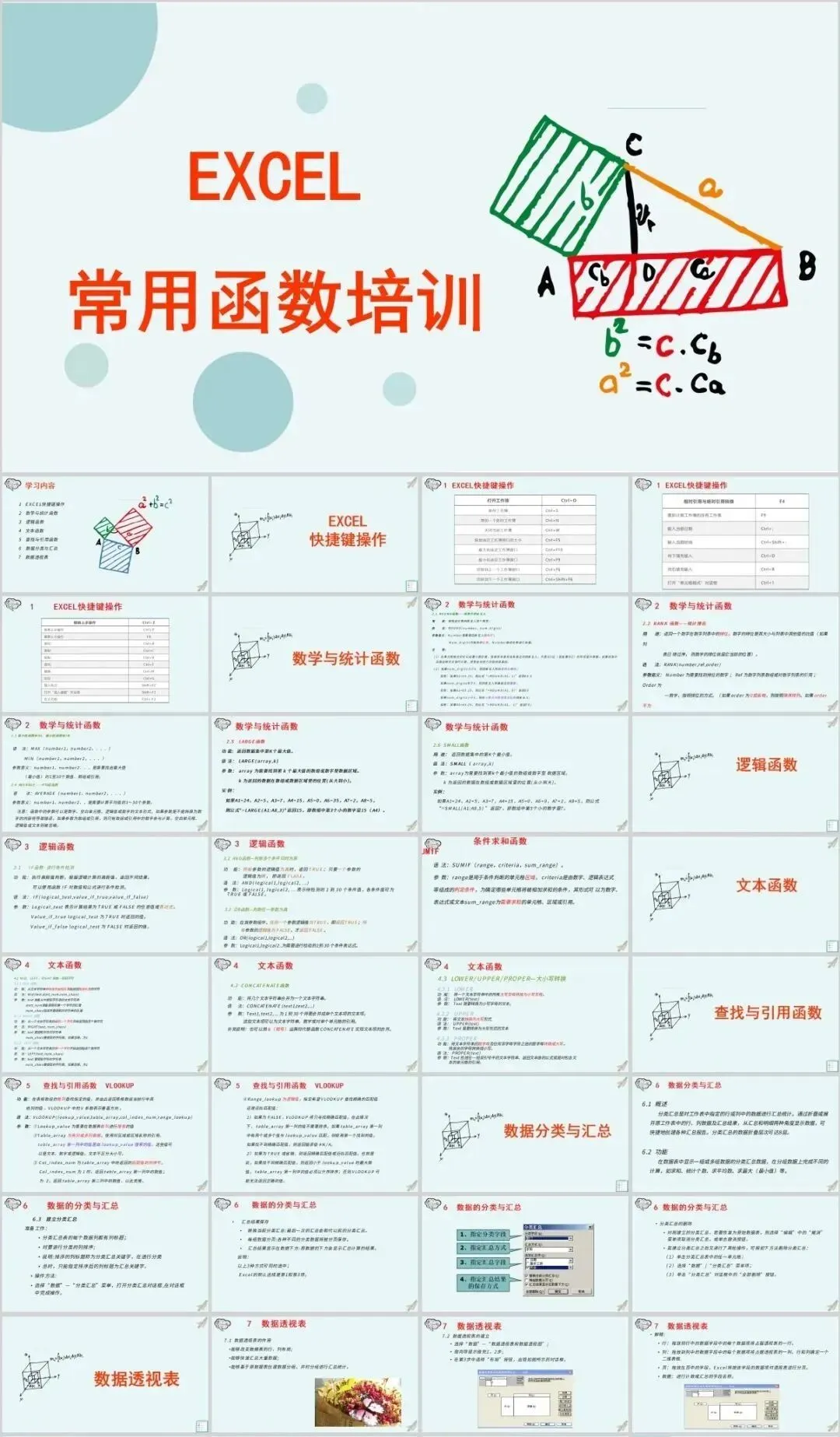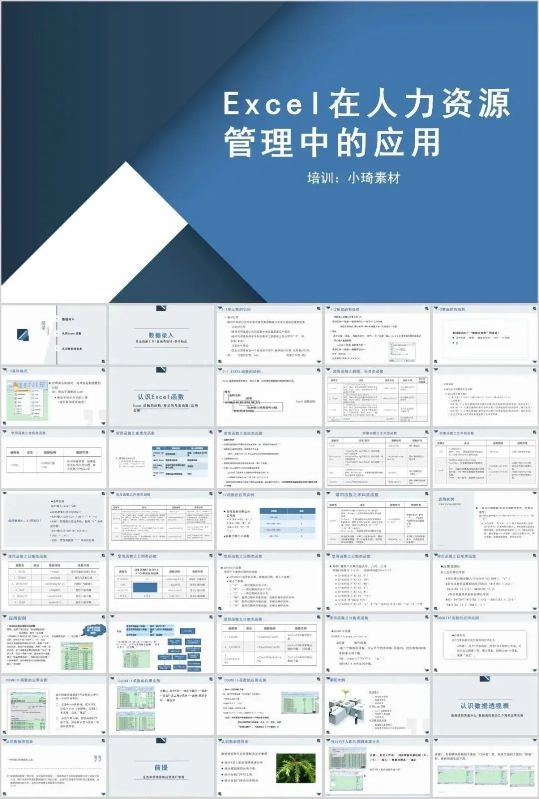 但是那个资料如果作为公司培训的话,就有点不合适了,所以这里小琦精心整理了这36套PPT格式的Excel培训课件,用PPT的格式去讲Excel是不是超nice的 !