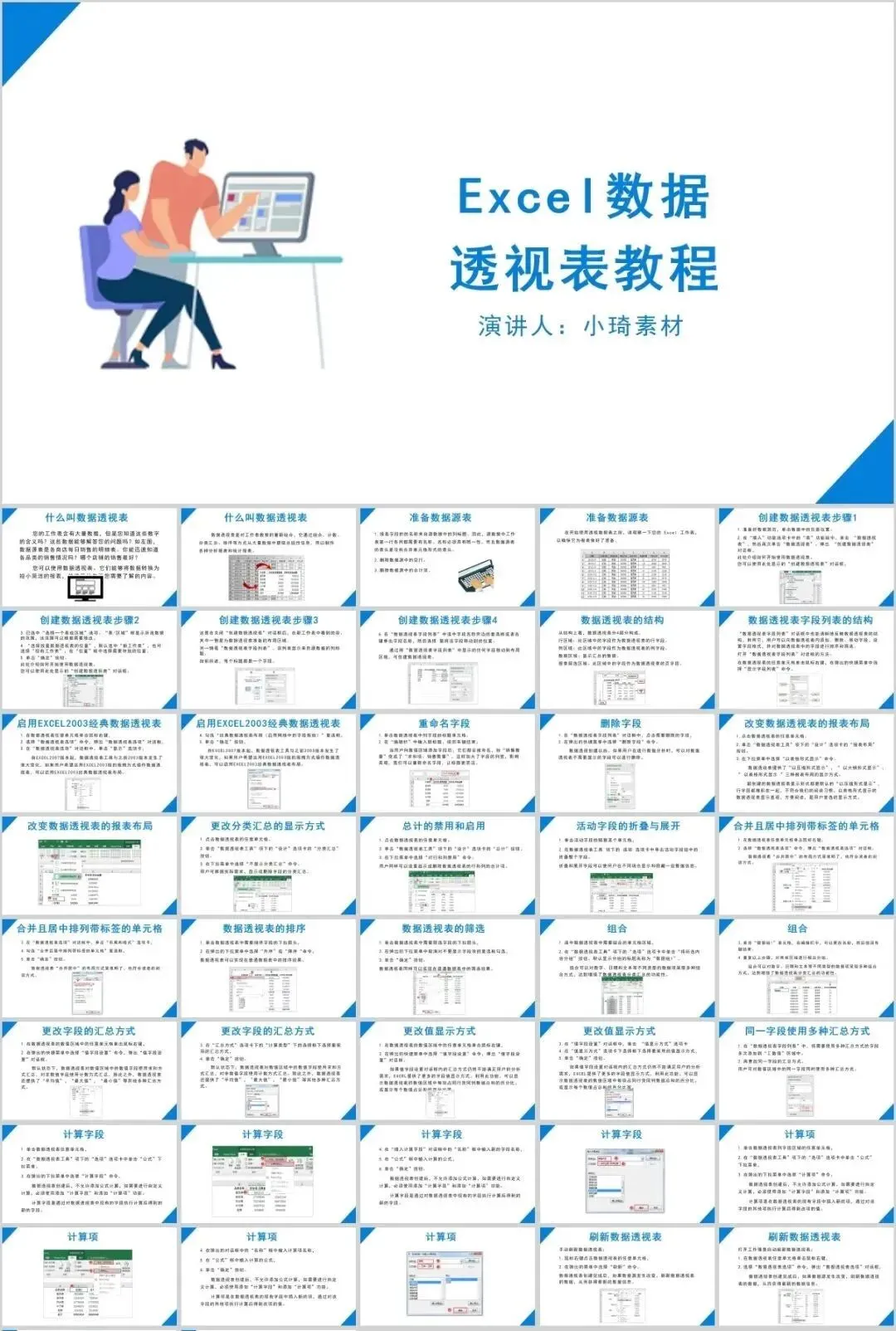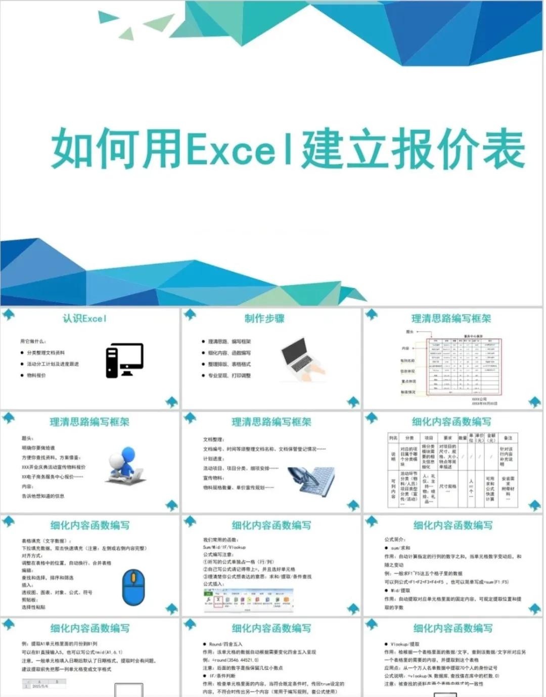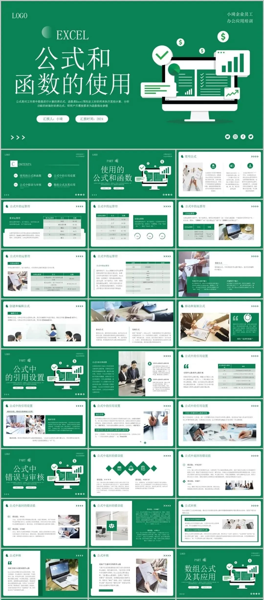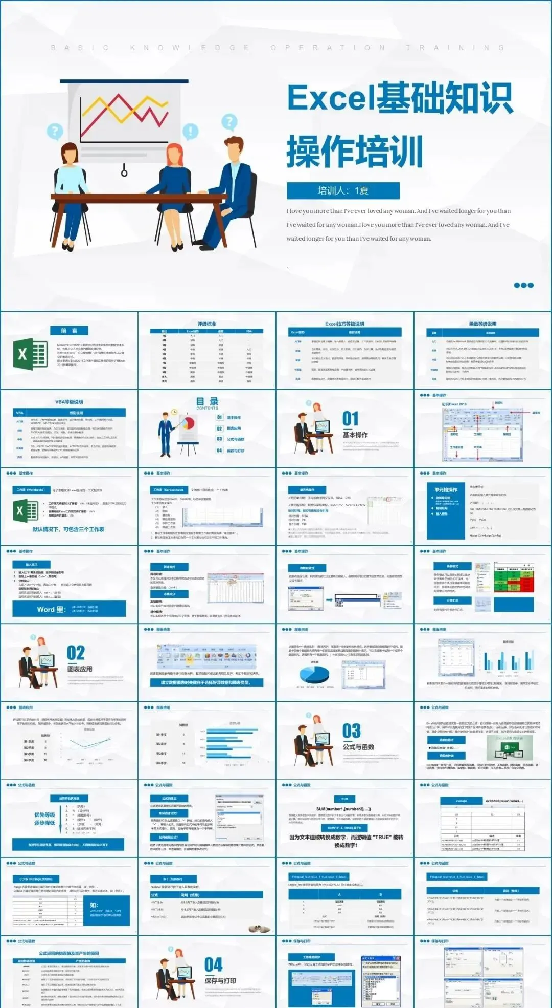 但是那个资料如果作为公司培训的话,就有点不合适了,所以这里小琦精心整理了这36套PPT格式的Excel培训课件,用PPT的格式去讲Excel是不是超nice的 !