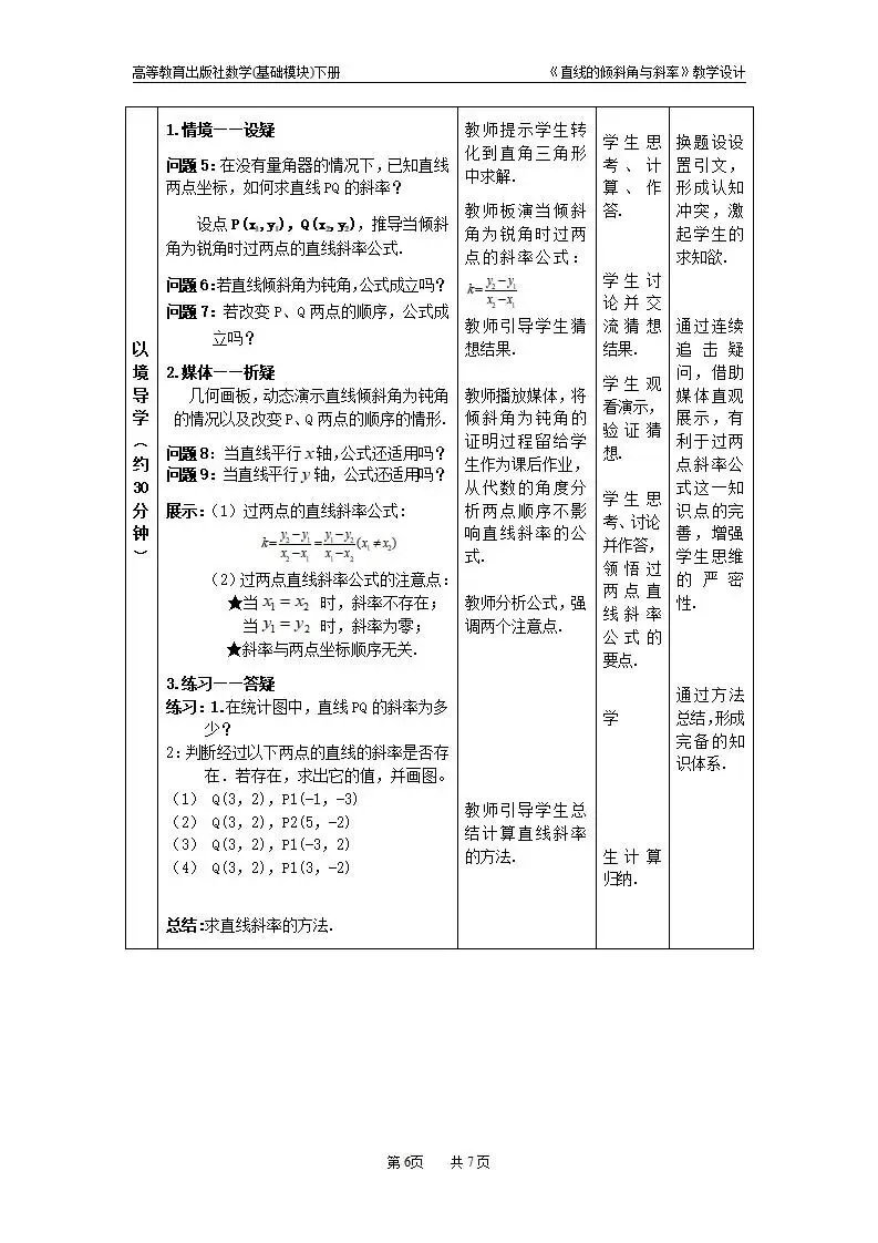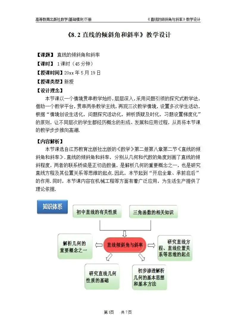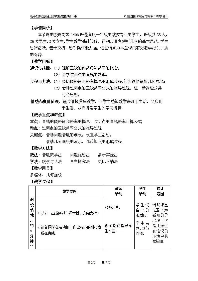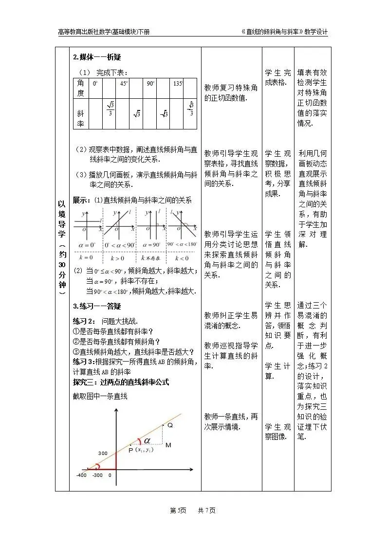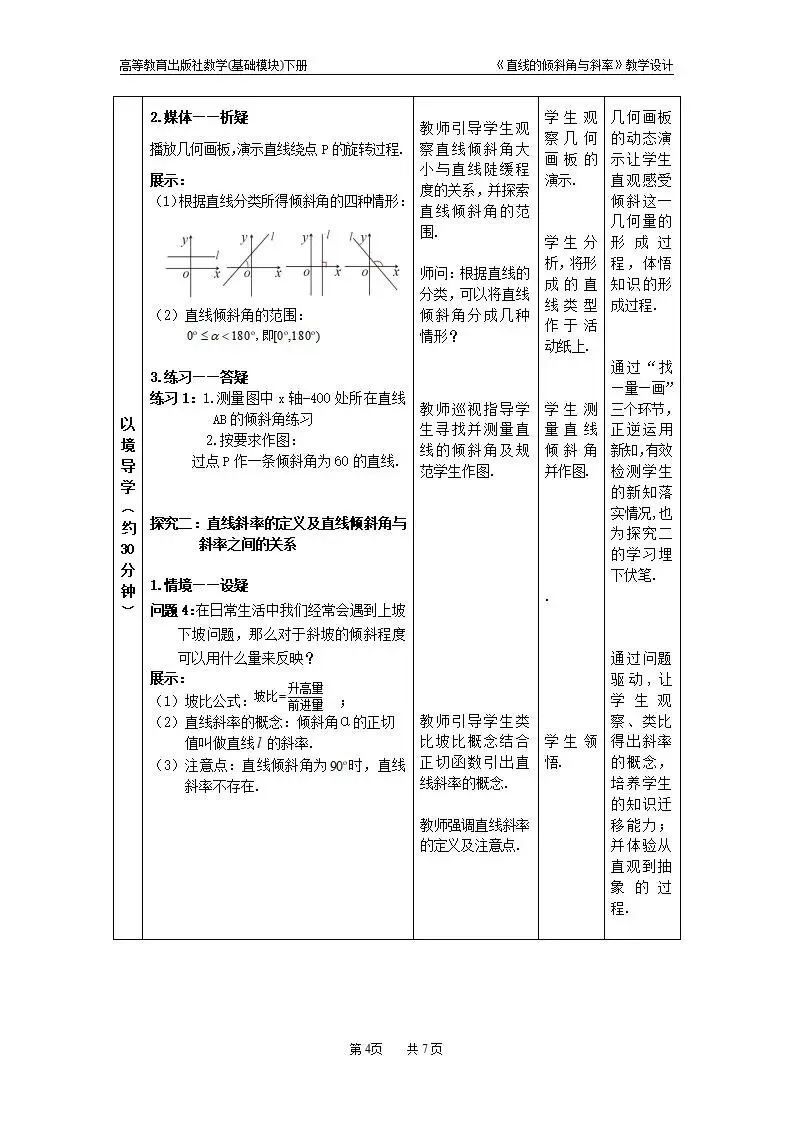 >直线的倾斜角和斜率教案教学设计word版