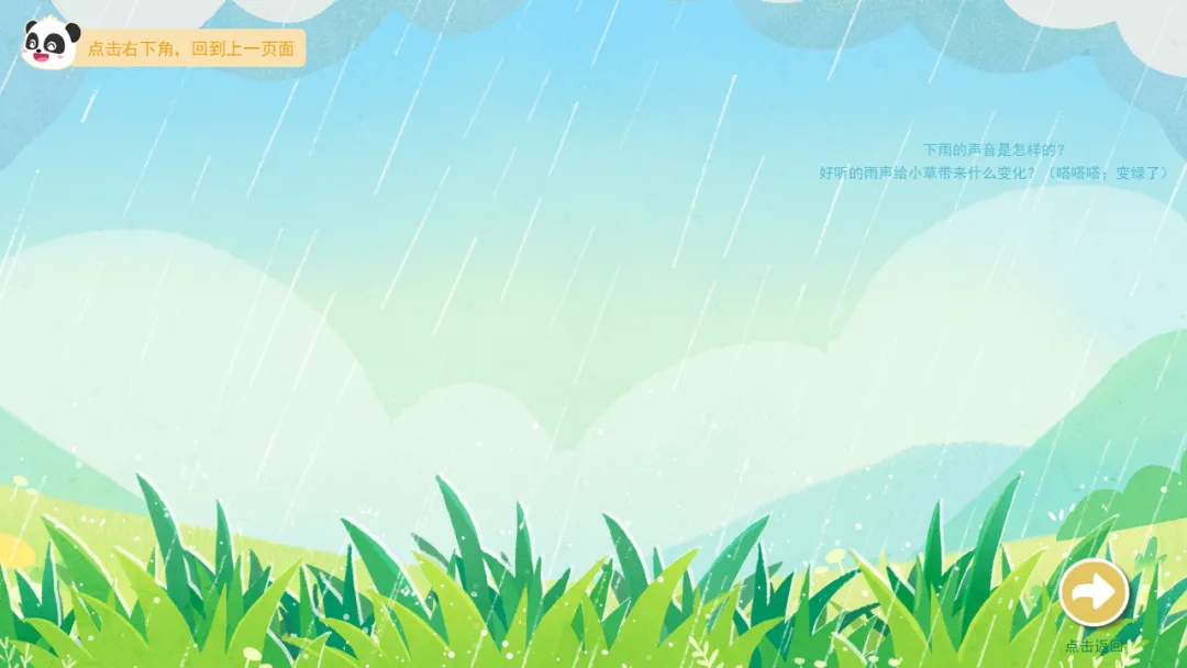——下雨的声音是怎样的?好听的雨声给小草带来什么变化?(嗒嗒嗒;变绿了)