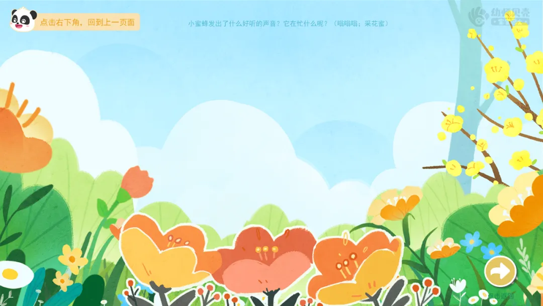 ——小蜜蜂发出了什么好听的声音?它在忙什么呢?(嗡嗡嗡;采花蜜)