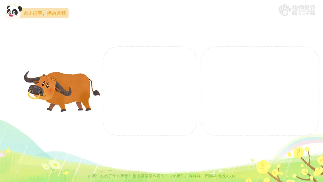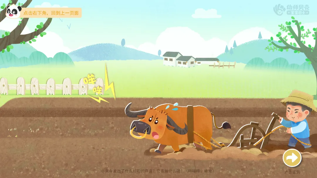 ——小黄牛发出了什么好听的声音?它在做什么呀?(哞哞哞;耕地)