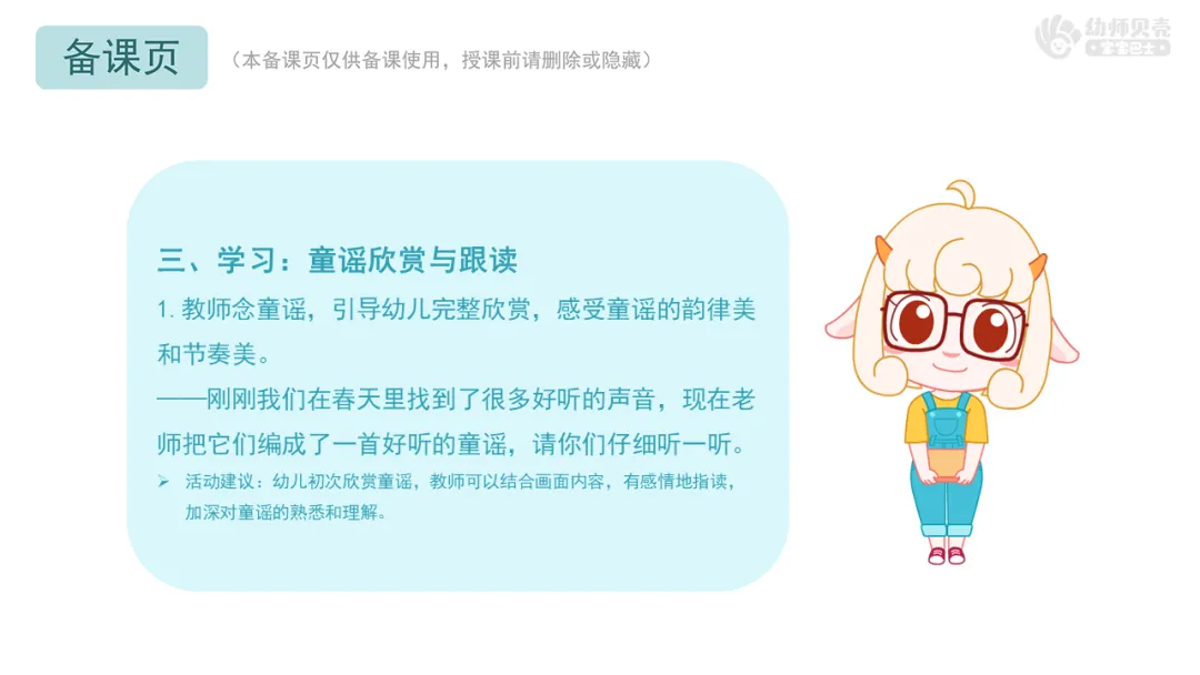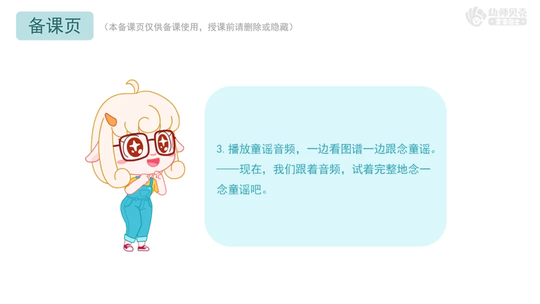 ——现在,我们跟着音频,试着完整地念一念童谣吧。