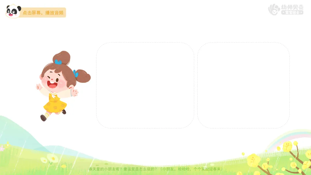 ——春天里的小朋友呢?童谣里是怎么说的?(小朋友,哈哈哈,个个笑脸迎春来)
