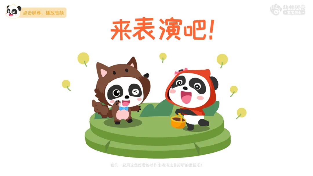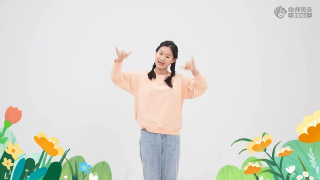 ——我们一起用这些好看的动作来表演这首好听的童谣吧!