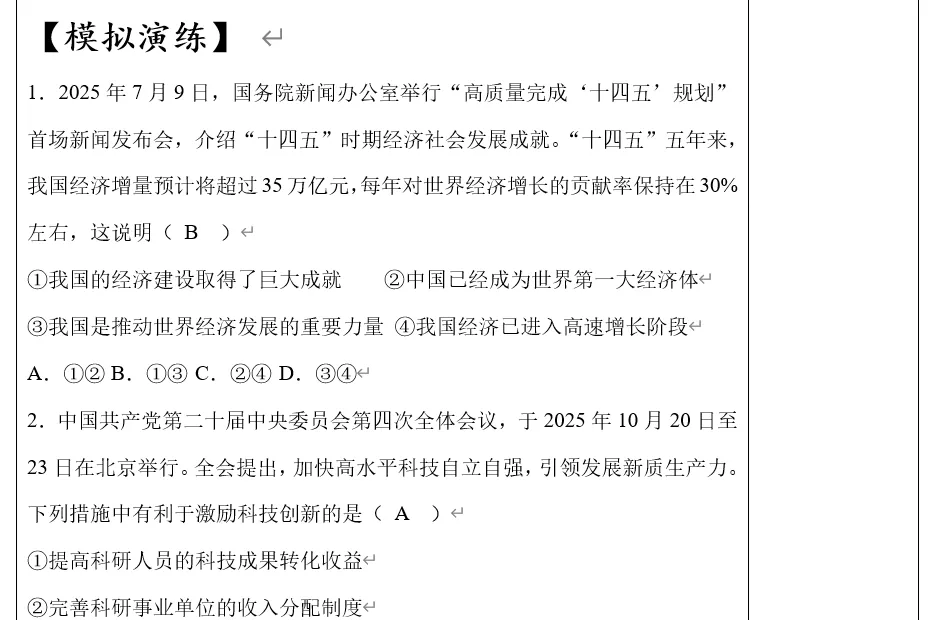 2026年中考道法时政热点专题26:2025年中央经济工作会议