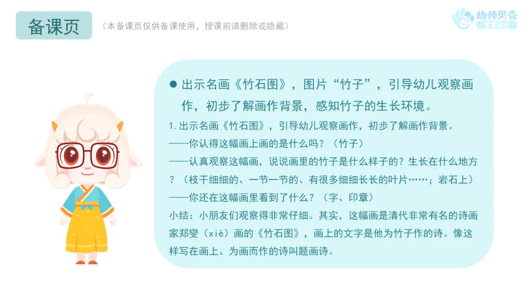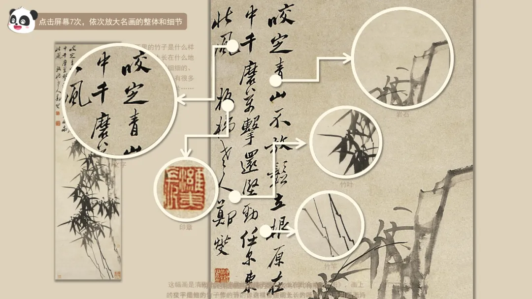 1.出示名画《竹石图》,引导幼儿观察画作,初步了解画作背景。