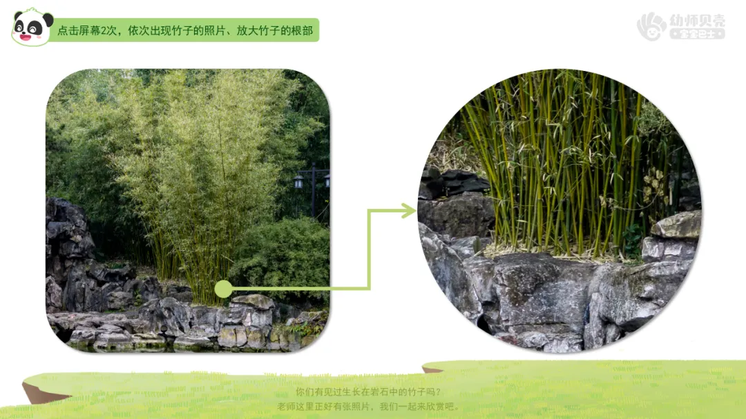 2.出示图片“竹子”,引导幼儿进一步感知竹子的生长环境。