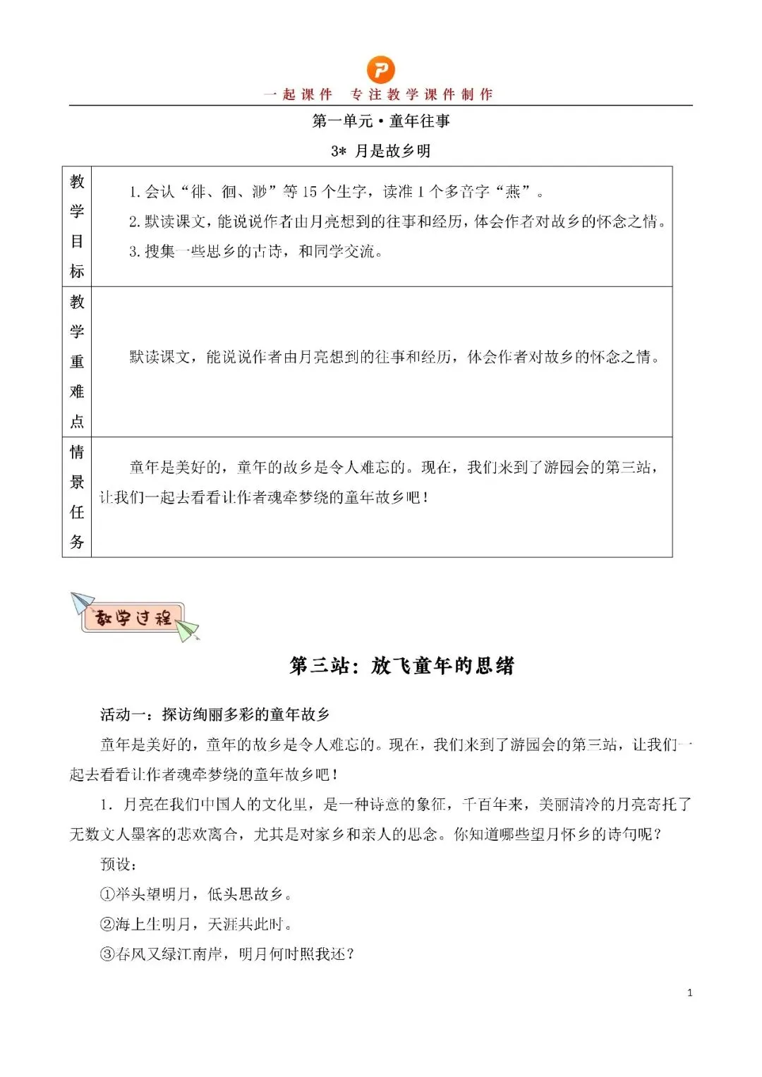>五下第一单元《月是故乡明》| 教学课件+教学设计