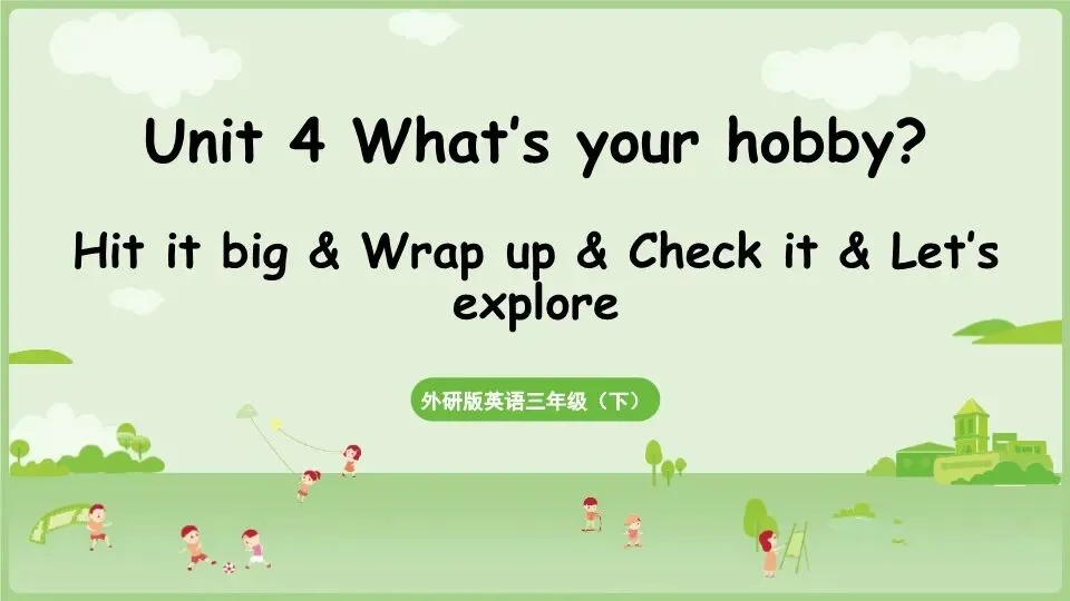 当前位置:首页>课件>【教学课件】(新教材)外研版(三起点)小学英语三下 Unit 4第4课时 Hit it big&Wrap up&Let's explore