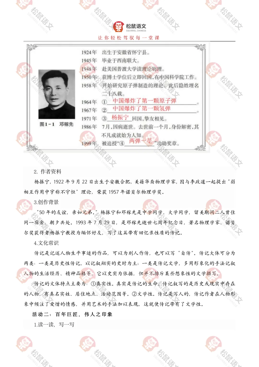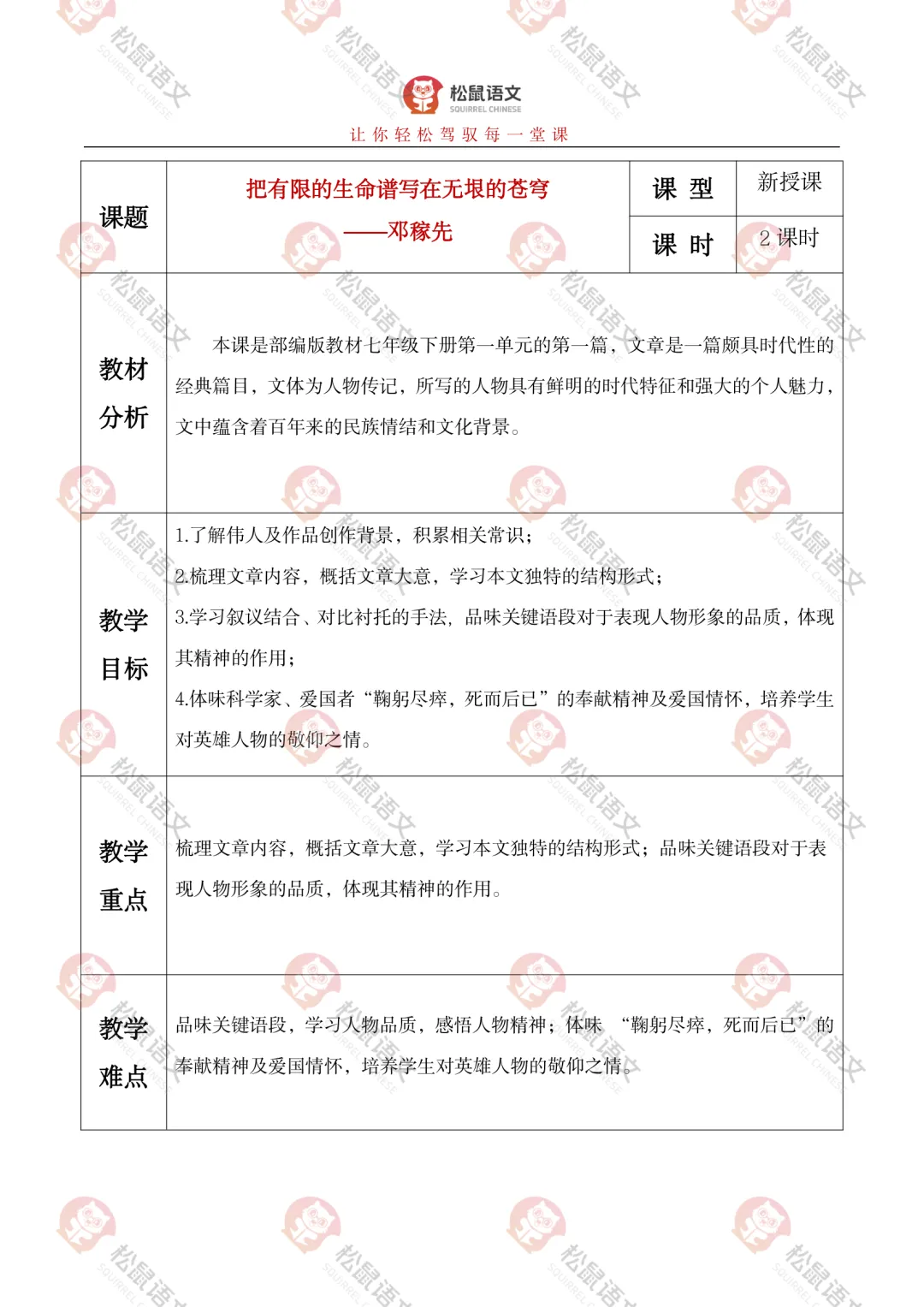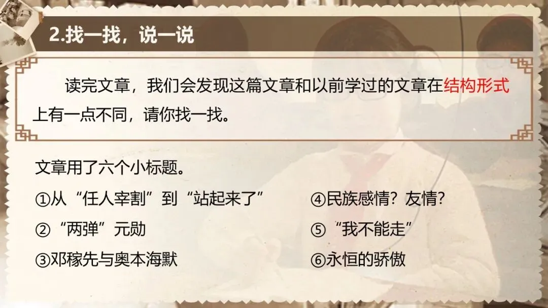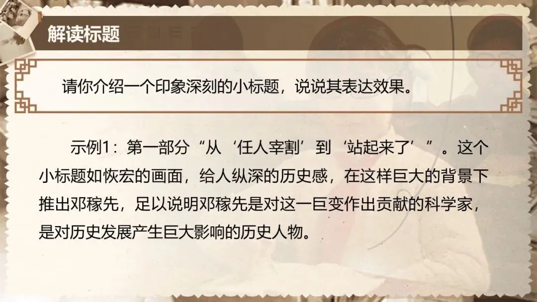 本课是部编版教材七年级下册第一单元的第一篇,文章是一篇颇具时代性的经典篇目,文体为人物传记,所写的人物具有鲜明的时代特征和强大的个人魅力,文中蕴含着百年来的民族情结和文化背景。