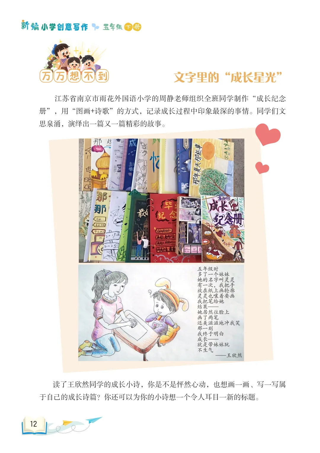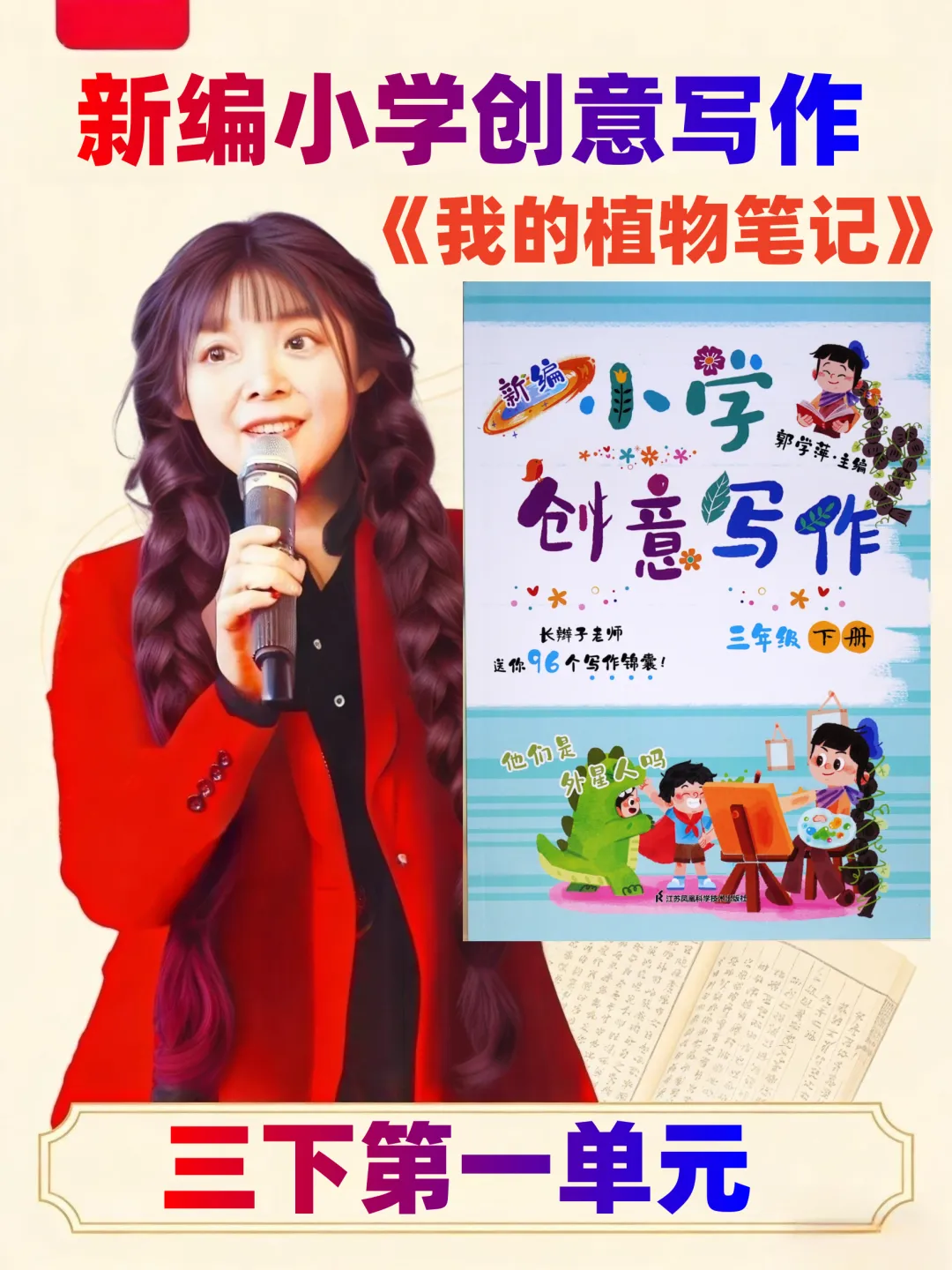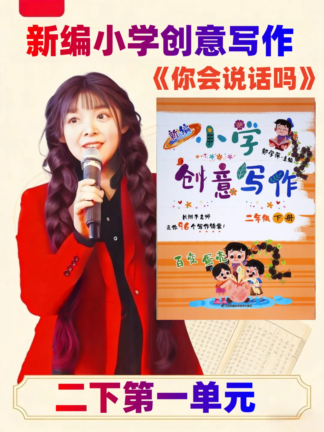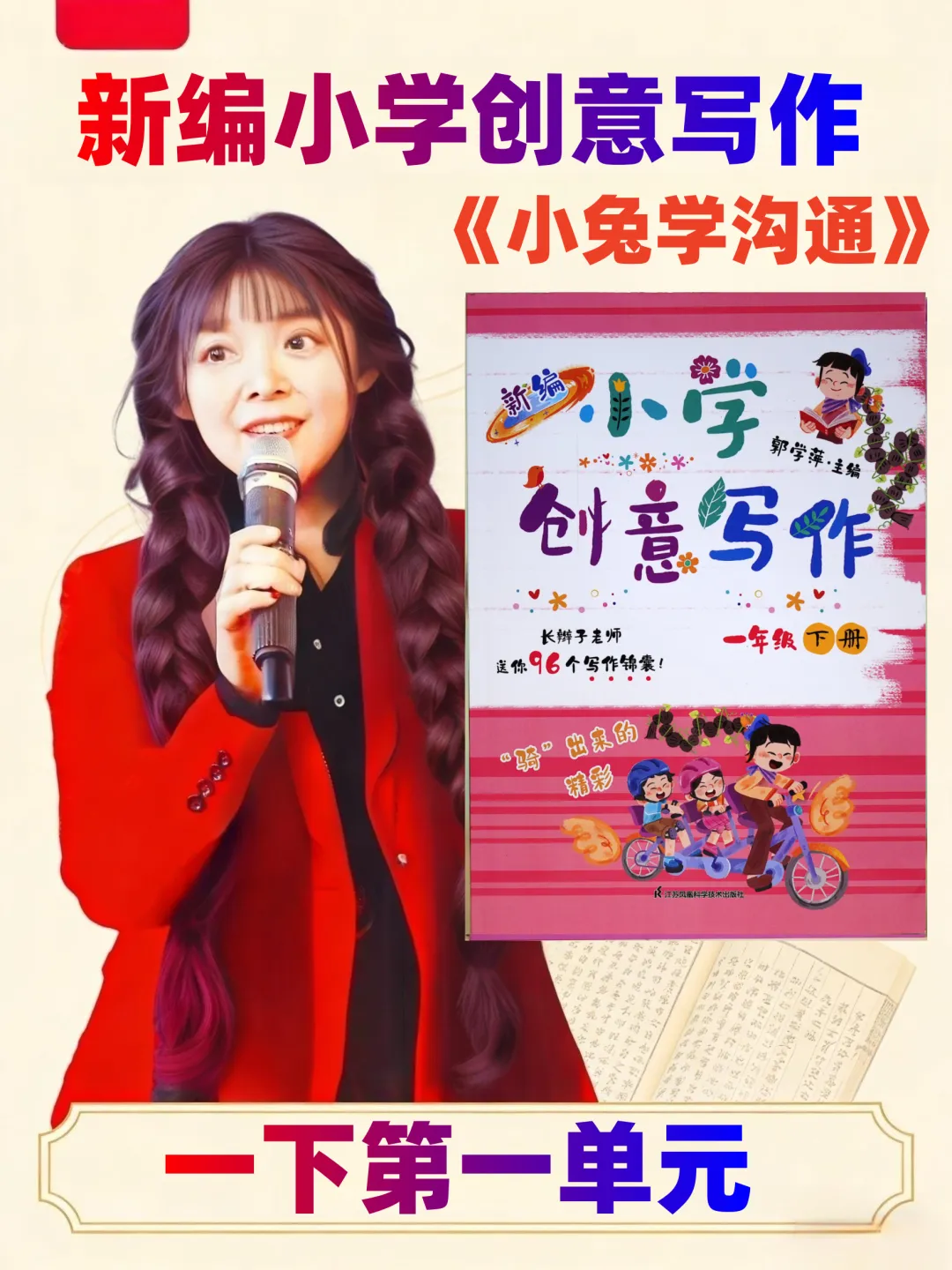 最后,长辫子老师就和大家分享《新编小学创意写作》1-6年级下册第一单元。没有枯燥的技法说教,没有刻板的范文束缚,只有贴近童心的创意引导。