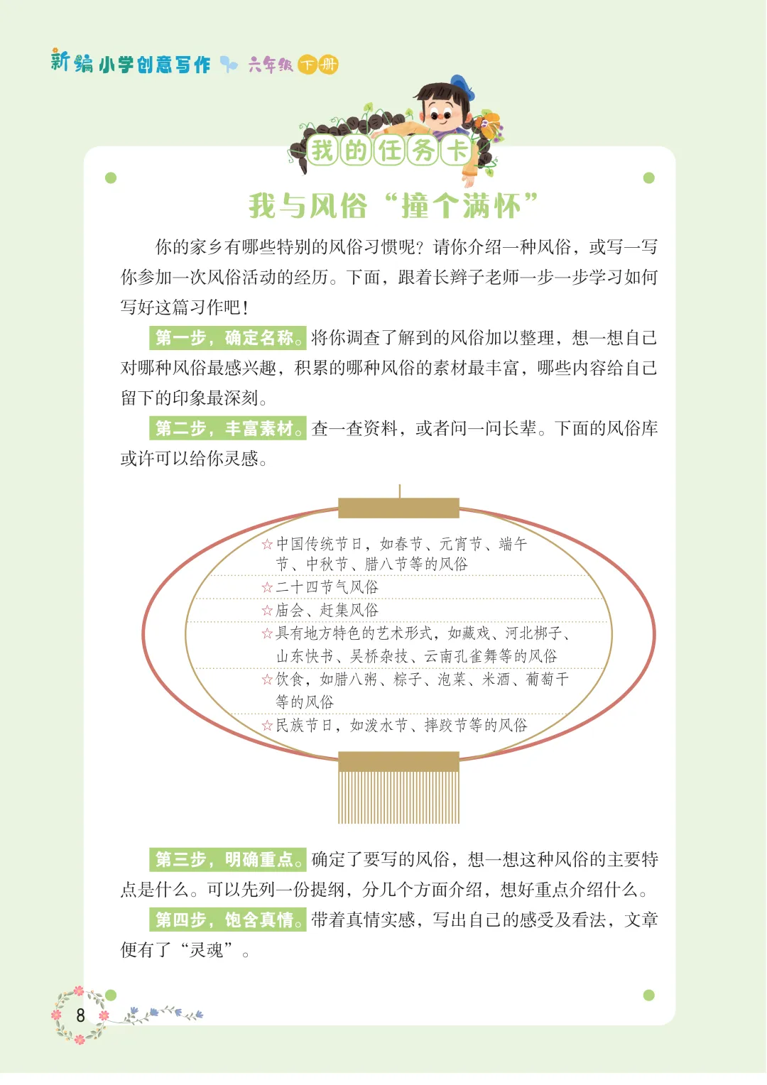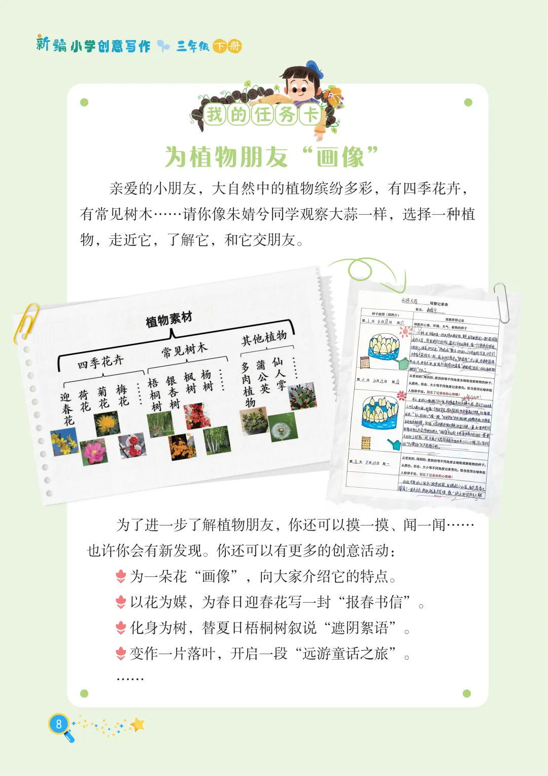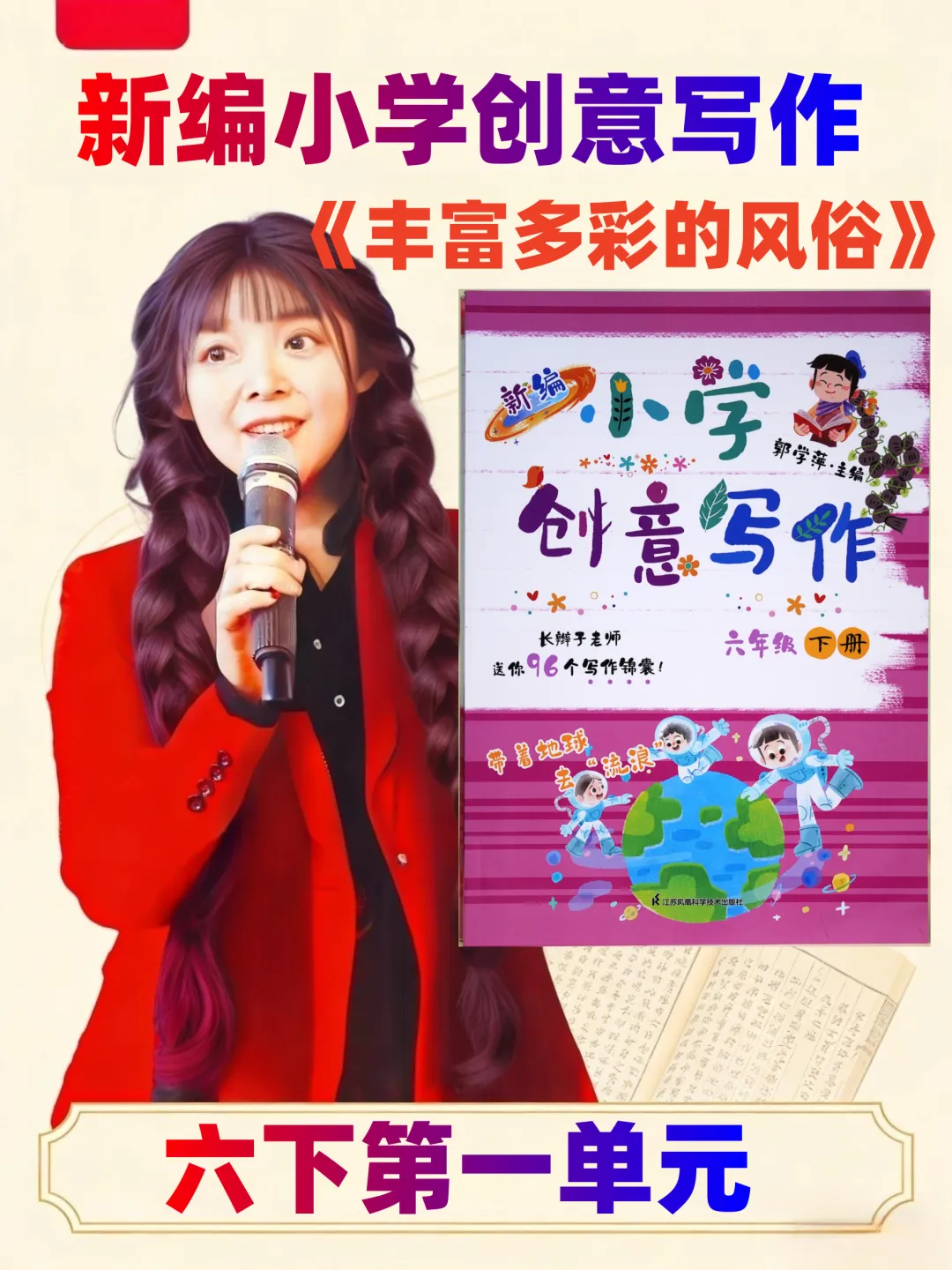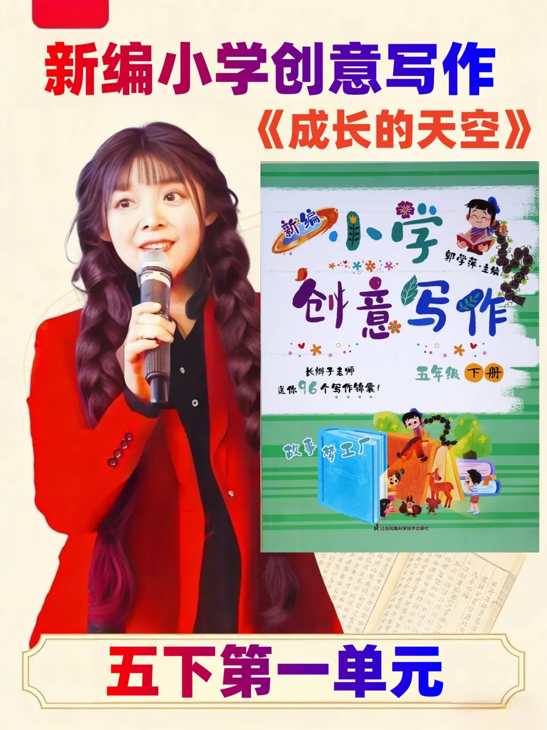 最后,长辫子老师就和大家分享《新编小学创意写作》1-6年级下册第一单元。没有枯燥的技法说教,没有刻板的范文束缚,只有贴近童心的创意引导。
