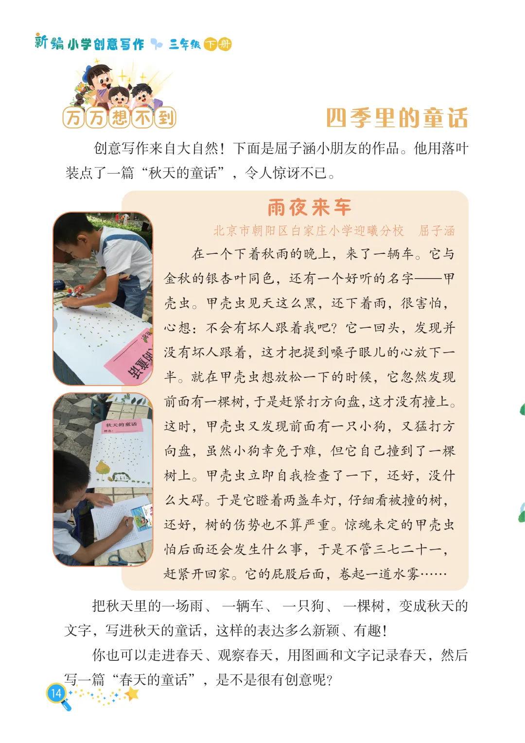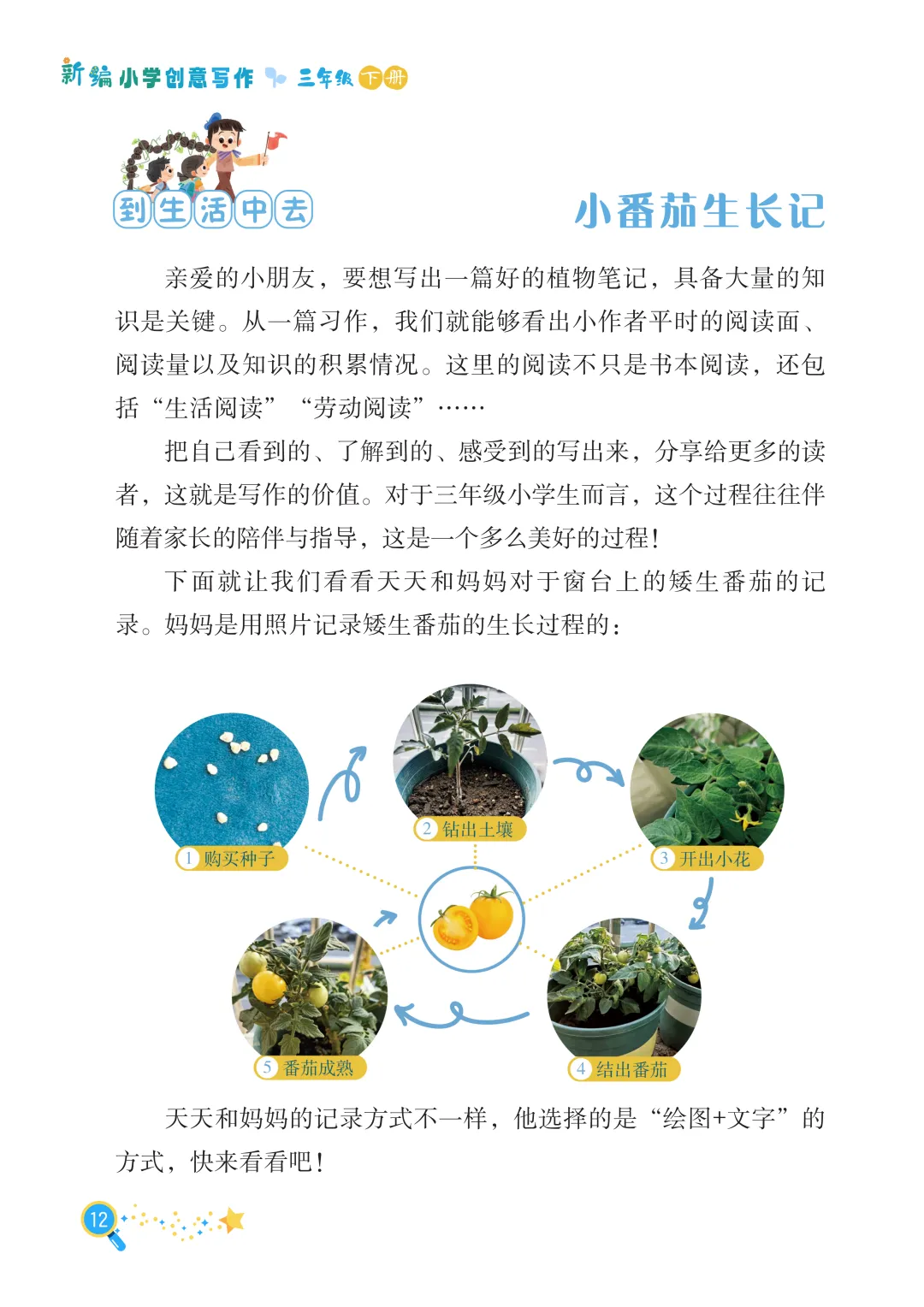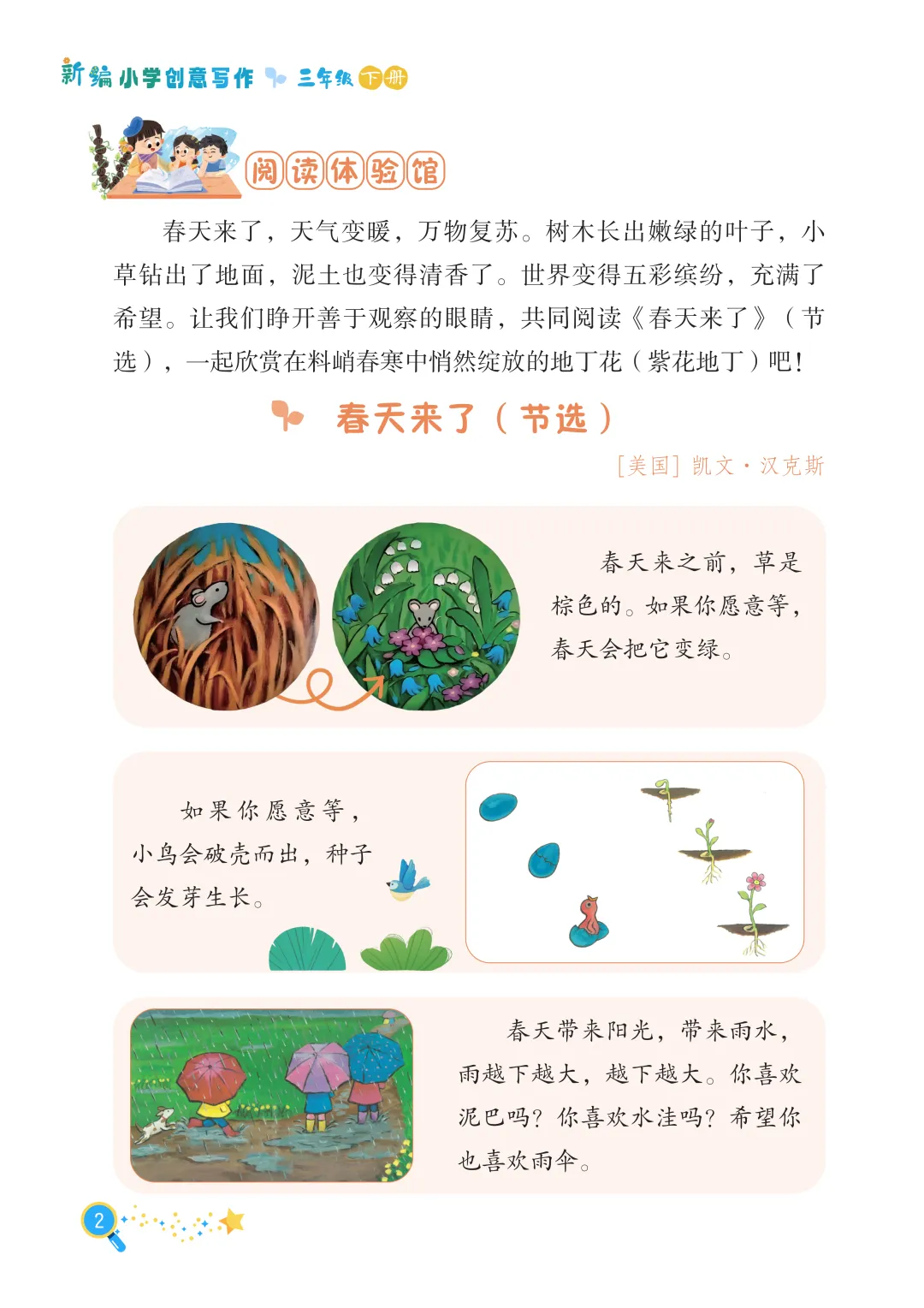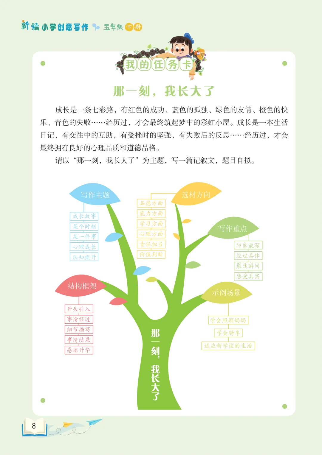 最后,长辫子老师就和大家分享《新编小学创意写作》1-6年级下册第一单元。没有枯燥的技法说教,没有刻板的范文束缚,只有贴近童心的创意引导。