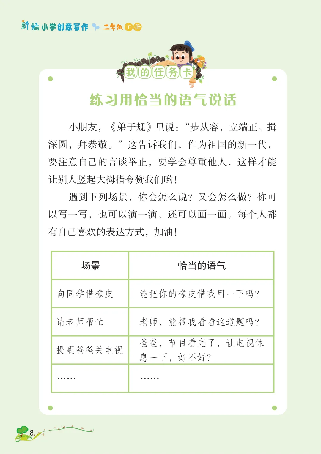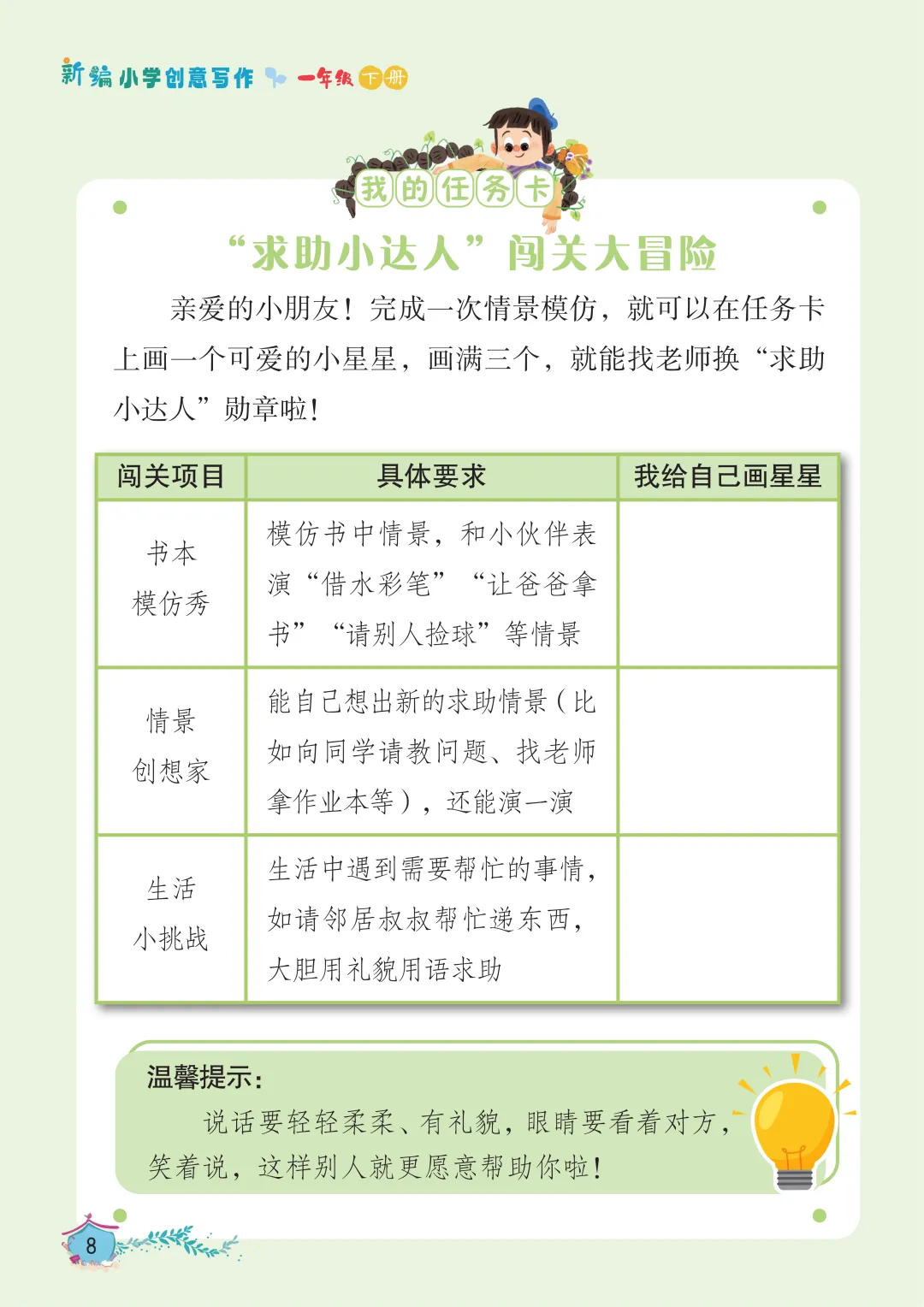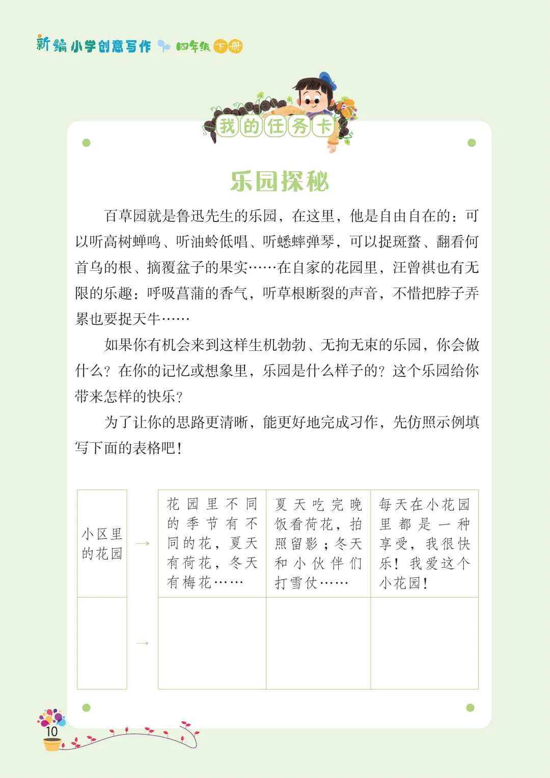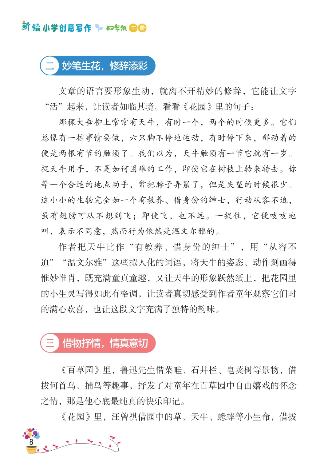 最后,长辫子老师就和大家分享《新编小学创意写作》1-6年级下册第一单元。没有枯燥的技法说教,没有刻板的范文束缚,只有贴近童心的创意引导。