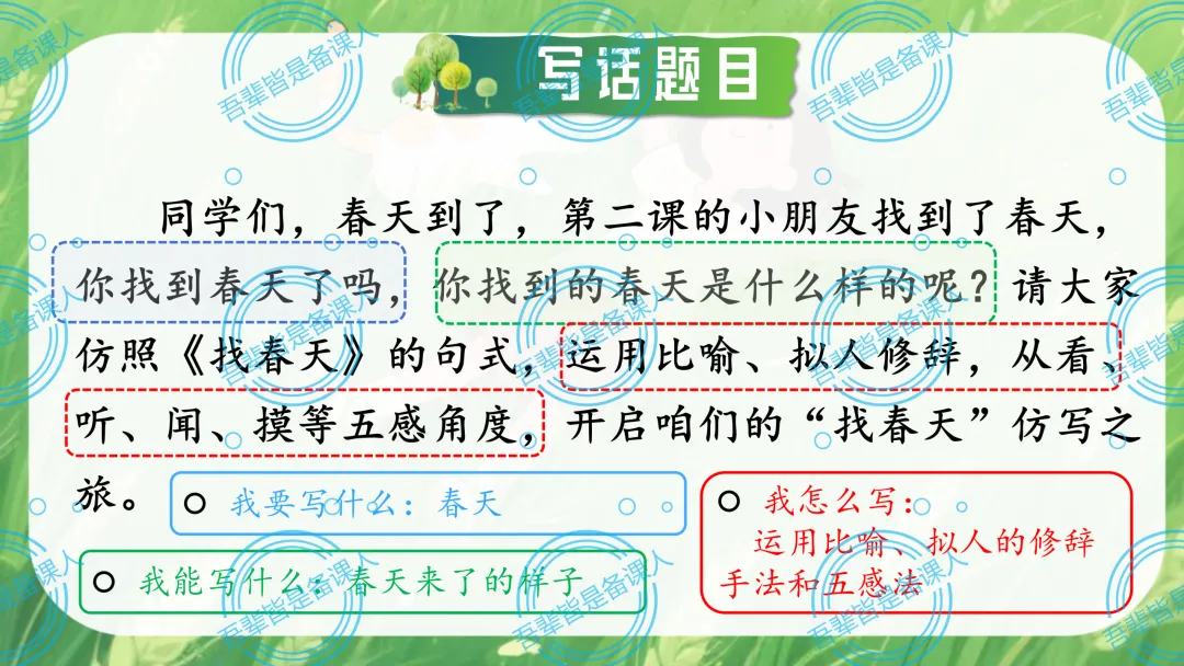 二年级下册||一单元仿写:《找春天》课件及配套资料