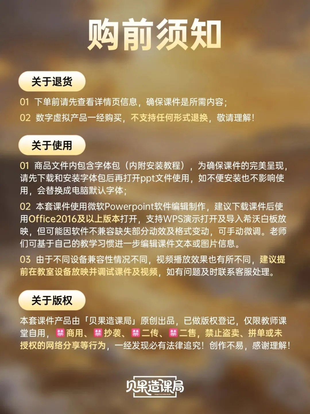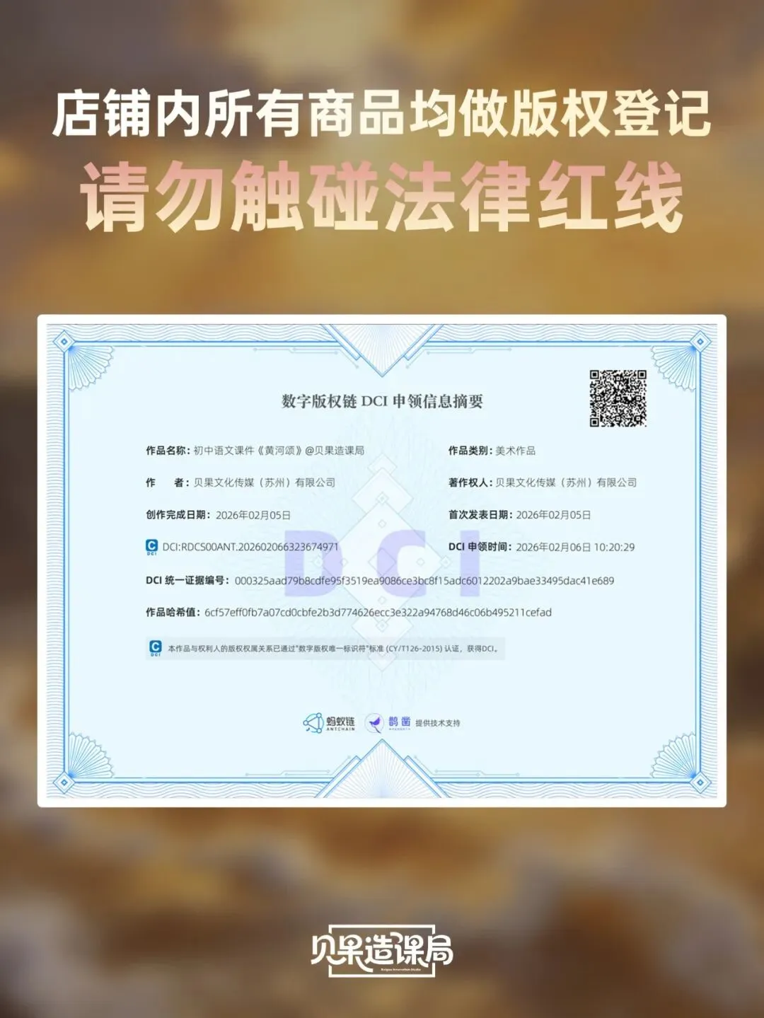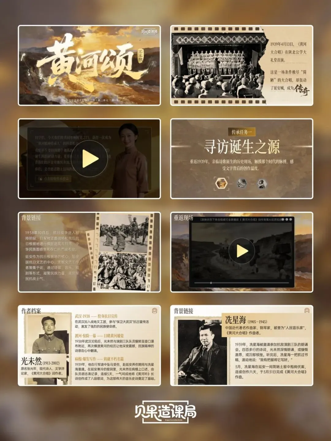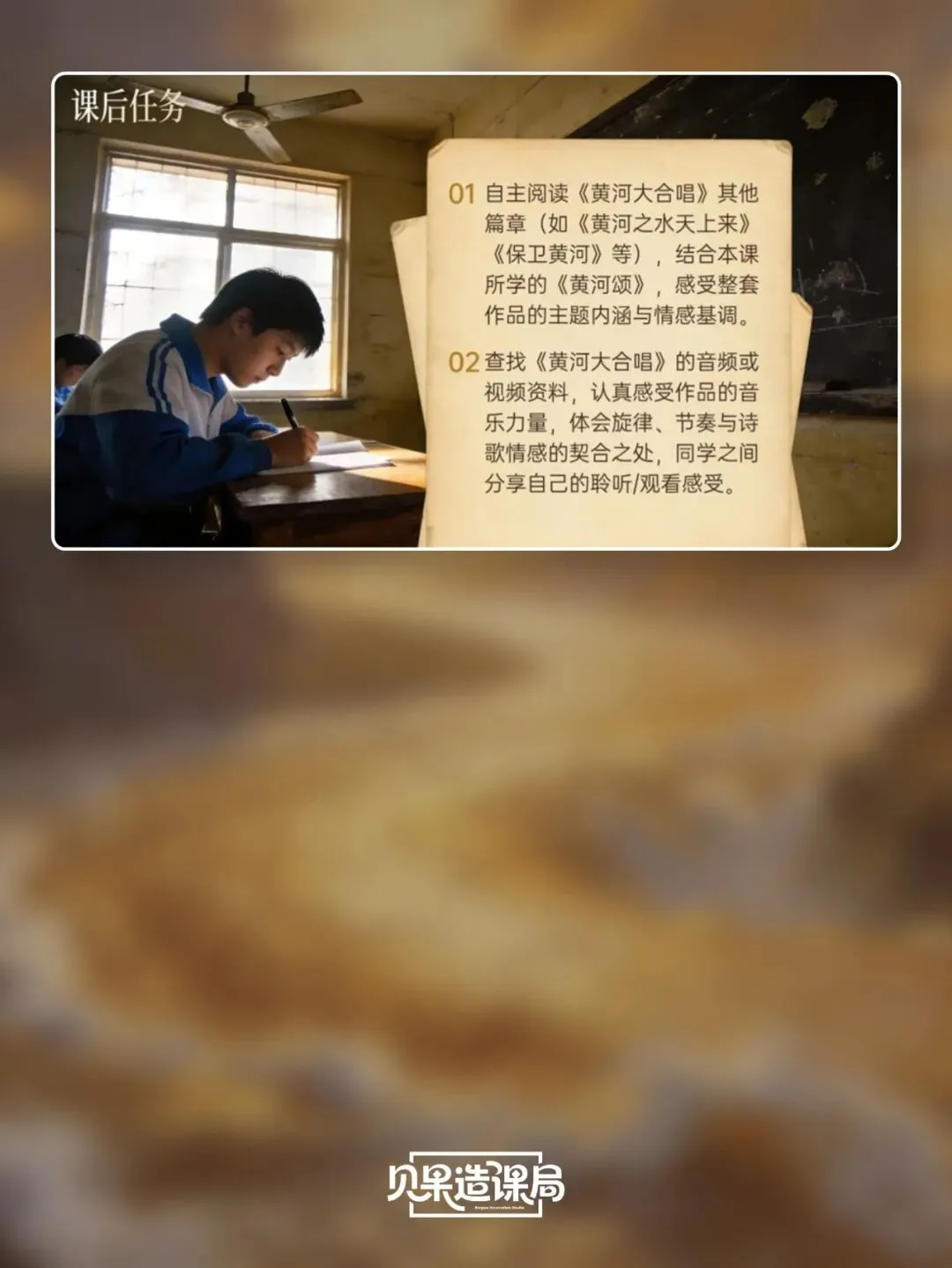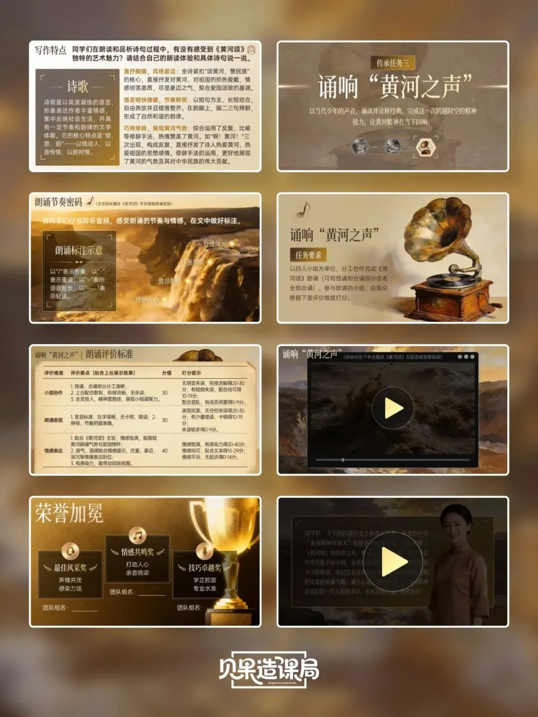 大家好~欢迎关注「贝果造课局」,今日分享部编版·七下语文第5课|《黄河颂》精品课件。本课情境设计:本课以“黄河精神传承人培养计划”为核心线索,学生将化身“传承人”,通过寻访《黄河颂》诞生之源、解析诗歌密码、诵响“黄河之声”三大任务,深入理解诗歌内涵与黄河精神,最终完成诗歌理解、朗诵展示与精神传承。(购买方式在文章末尾)为感谢所有一直支持我们的粉丝朋友们,所有的商品均可先行领券,新老客户可领取不同券额的优惠券!(如之前购买过我们课件,但没有领取老客优惠券成功的,可联系客服核对订单改价)课件如有使用问题,均可联系客服,协助您第一时间解决:bgyw999