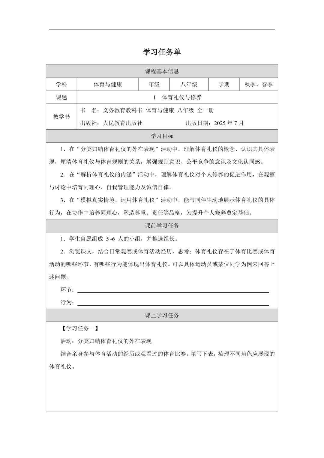 当前位置:首页>教案>2026春体育与健康八年级全一册 教案+课件PPT+任务单(人教版),可下载编辑!