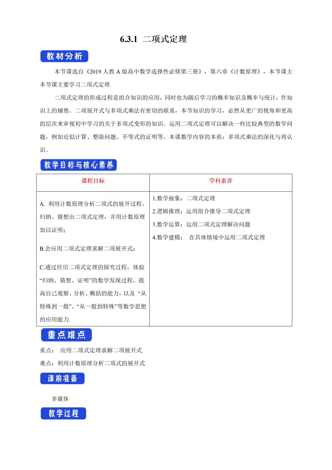 人教A版高中数学选择性必修三核心素养教案含反思+课件+学案+知识点