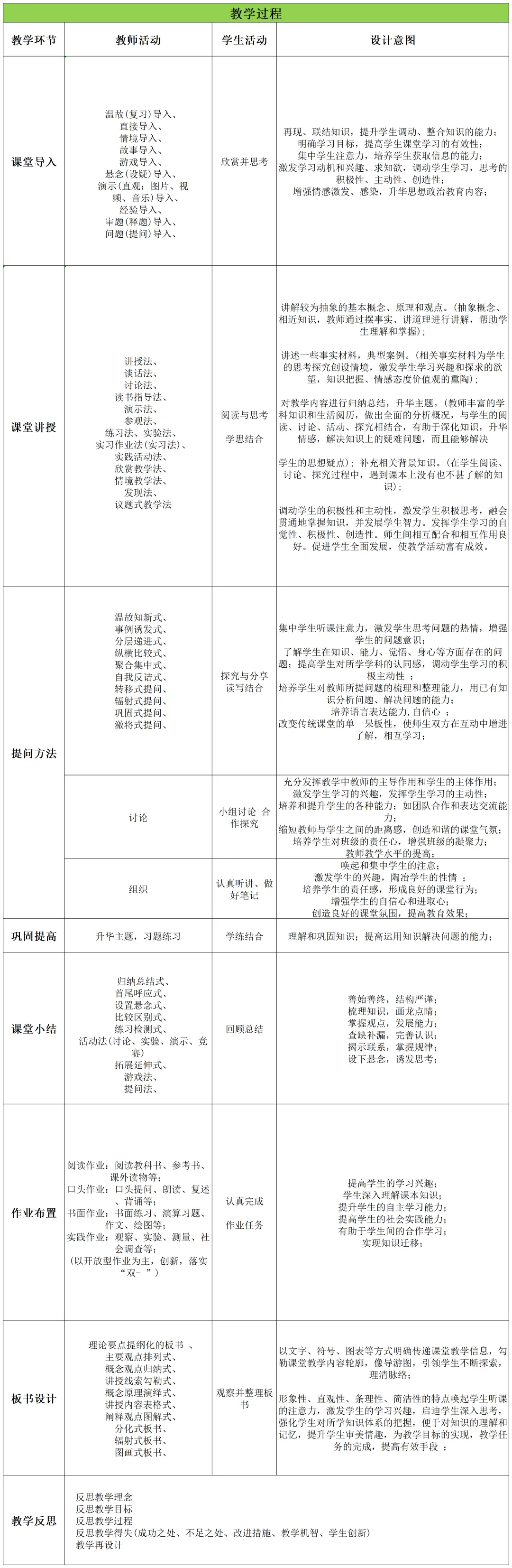 当今教学工作中最常见的一种教案形式,一般的表格形式如下: