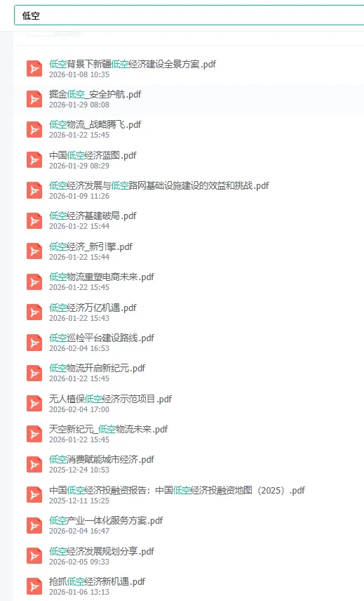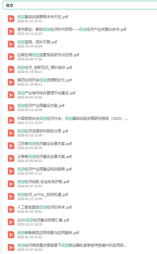 我们的团队创建了低空经济资料库,上面有上千份关于低空经济相关的文献,助力大家学习和进阶,看看这些资料有没有你想看的?