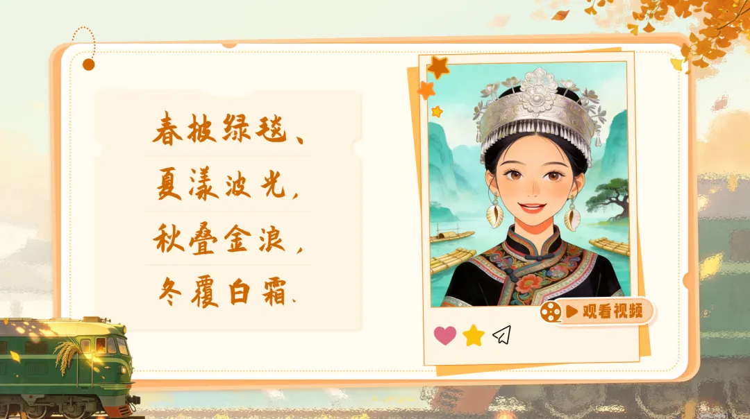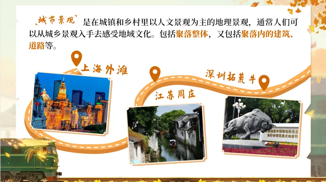 在美化设计上也紧扣考察情境,每个部分过渡采用火车车窗对应所不同的城乡景观,增强学生对于《地域文化与城乡景观》的认识。