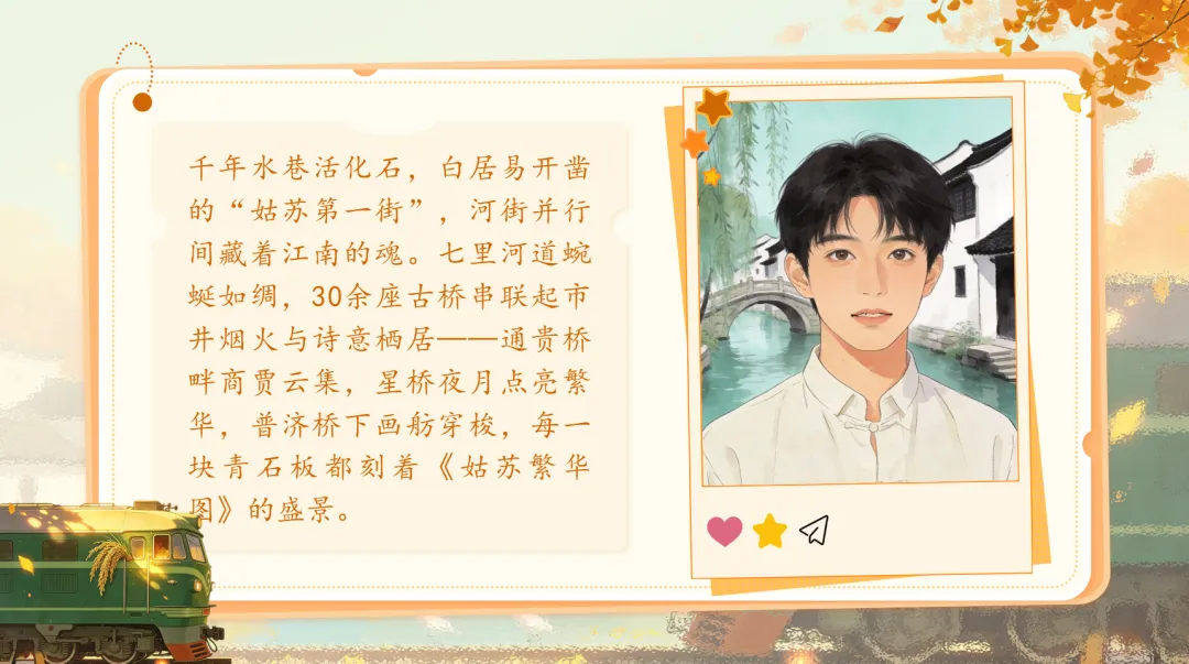 在情境趣味设计上,根据不同地点的考察,设置了符合情境的会说话的AI数字人旅游向导,增强课堂趣味性。