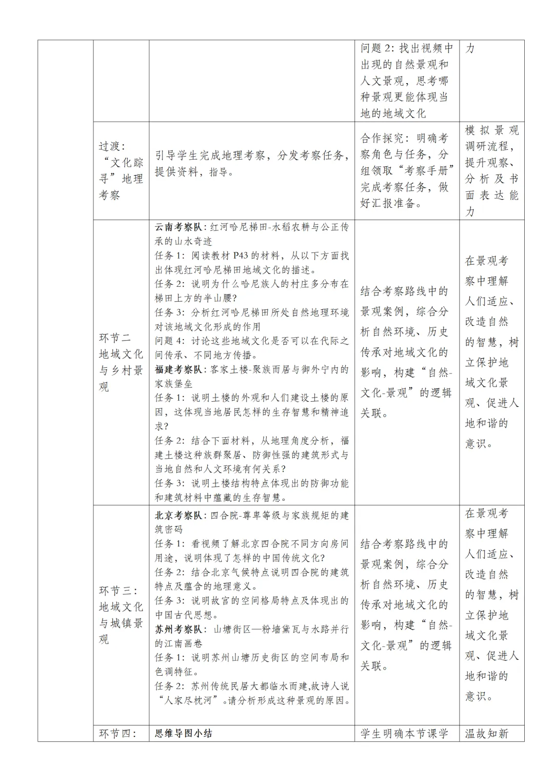 例如:在2.3《地域文化与城乡景观》这一节中,为了符合情境化和教学的需要,以“城乡藏文脉,行走识中国”为主题,设计地理考察情境,通过完成趣味考察,让学生积极参与课堂。