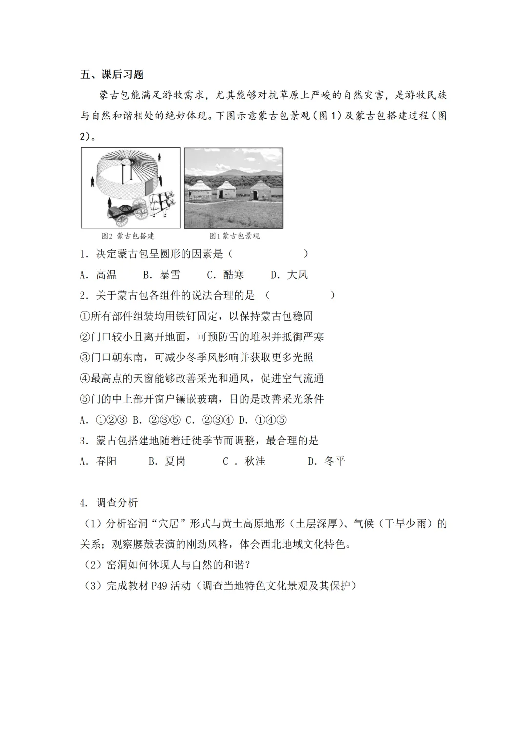 在教学活动的设计上,根据课标要求,采取提问分析+案例探究的方法,通过分析体现人类生活与自然环境关系的典型实例,掌握人文地理问题的思路和方法,实现知识迁移和能力提升。