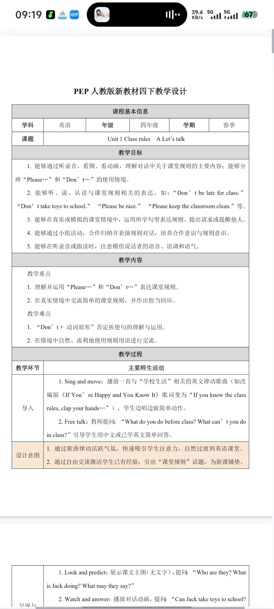 当前位置:首页>教案>新pep四下英语整体单元教案教学设计