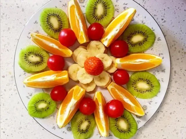 花开富贵传统的吉祥图案之一,代表了圆满、富贵,经常做菜的朋友们都知道,把食材摆成花朵的图案,都可以叫做花开富贵,为新年讨一个好兆头,操作过程:用到了5种水果,分别是猕猴桃、圣女果、香蕉、草莓和橙子,切除需要的图案,依次码放整齐即可,造型漂亮,口感鲜嫩多汁。