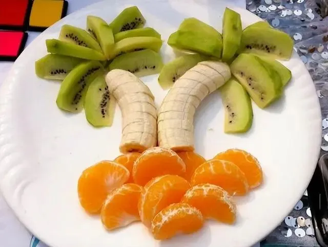 椰子树属于热带作物,具有较高的营养价值,椰子属热带作物,适宜生产在高温多雨的地区,椰子树树形优美,植株高大,优化环境,绿化效果特别好,操作过程:总共用到了3种水分,分别是香蕉、橘子和猕猴桃,切片切段,摆放整齐即可。