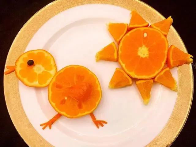 “小鸡小鸡,咯咯咯”,早晨太阳升起来了 ,小鸡离开鸡妈妈,开始寻找食物,它在草丛里玩耍,找虫子吃,一会又玩起了捉迷藏的游戏,家中有小朋友的,可以试试这个水果拼盘,和孩子一起完成,操作过程:“橙子”切片,场景除了小鸡,还有太阳。