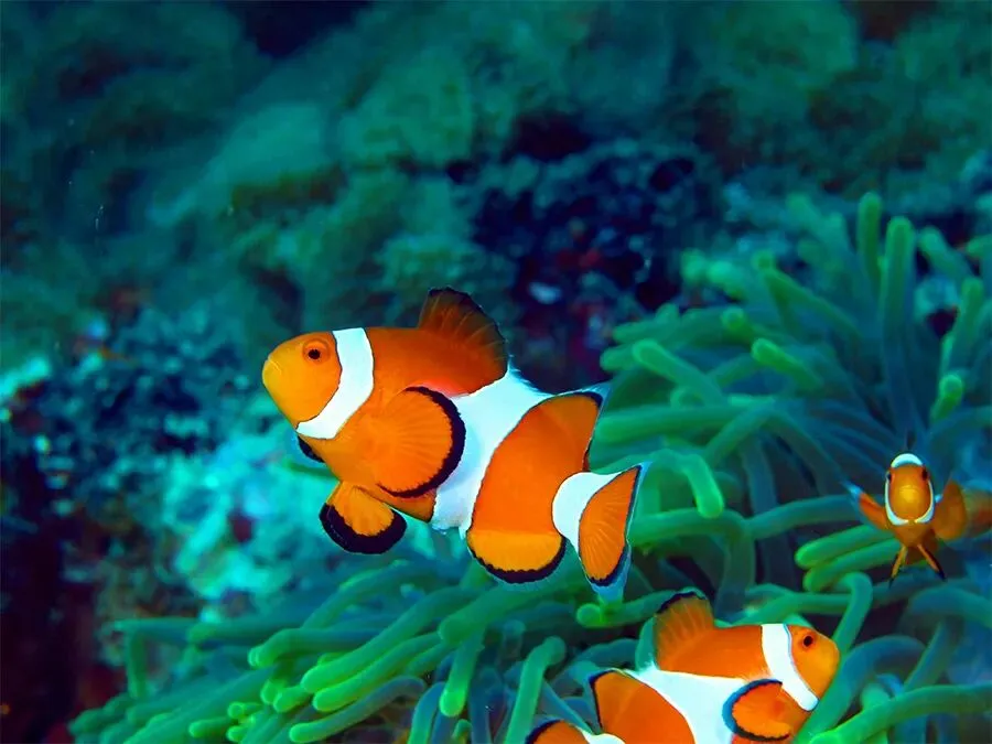 别看小丑鱼个子小小的,它可是海底最聪明的生存专家。它最喜欢和海葵做朋友,在摇曳多姿的海草与海葵触手间钻来钻去,玩着捉迷藏。海葵保护小丑鱼不被大鱼吃掉,而小丑鱼也会帮好朋友清理卫生。它们就这样在碧绿、深蓝的海底丛林里自由自在地穿梭,过着无忧无虑的生活,像极了森林里跳动的小精灵。