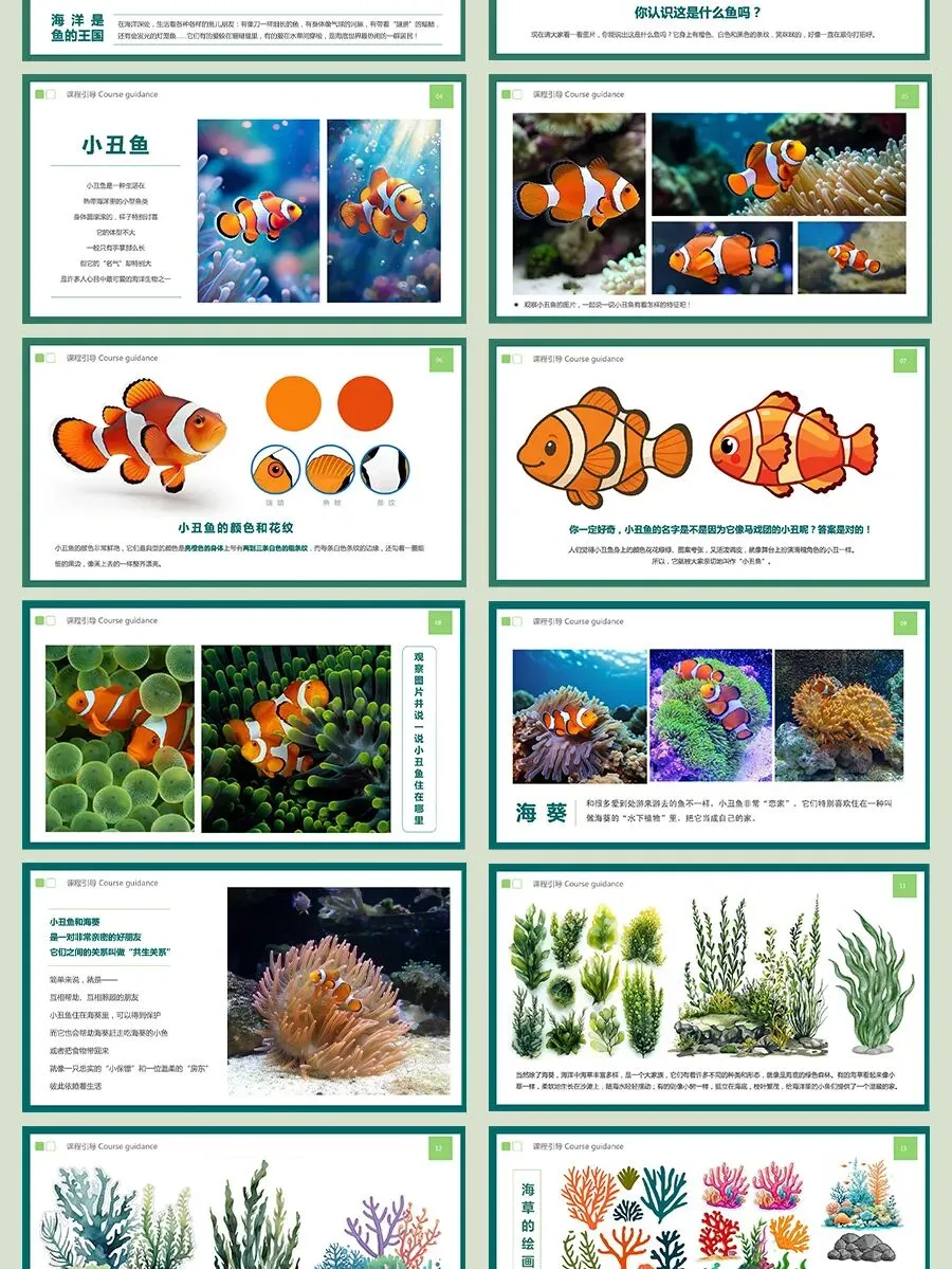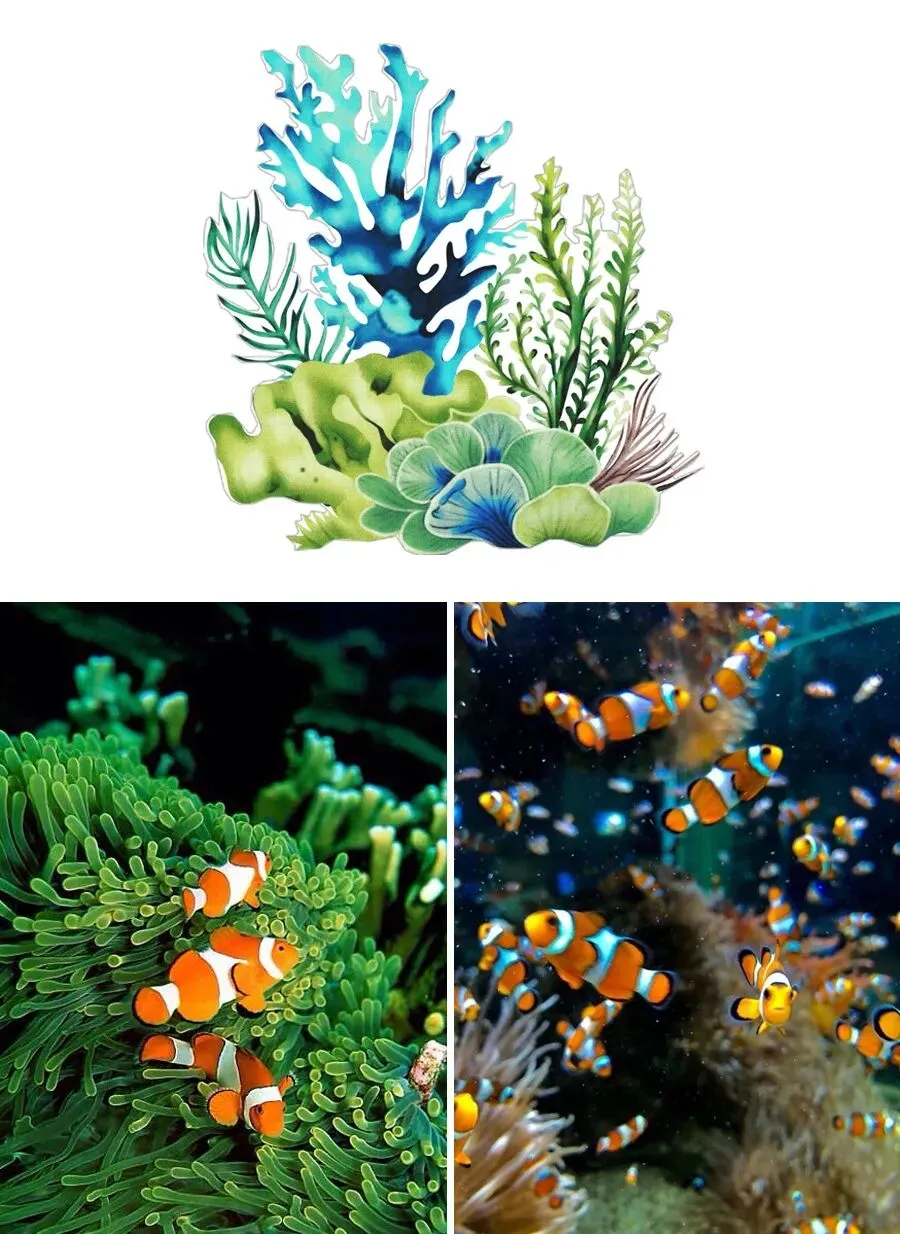 海洋真一个多姿多彩的童话世界,你看,巨大的珊瑚礁像五彩斑斓的花园,成群结队的鱼儿像流动的彩虹。在这些形态各异的海洋生物中,有一位身穿“条纹礼服”的小明星最受欢迎,它就是活泼可爱、充满灵气的——小丑鱼。