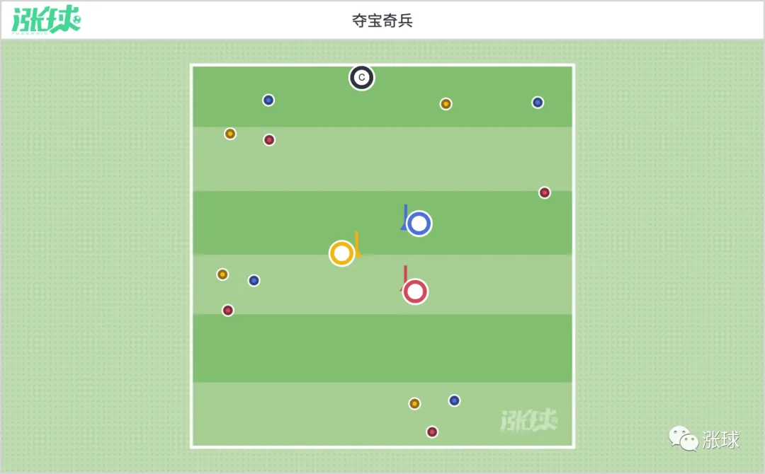 中心点的队员增加足球,运球抢占位置