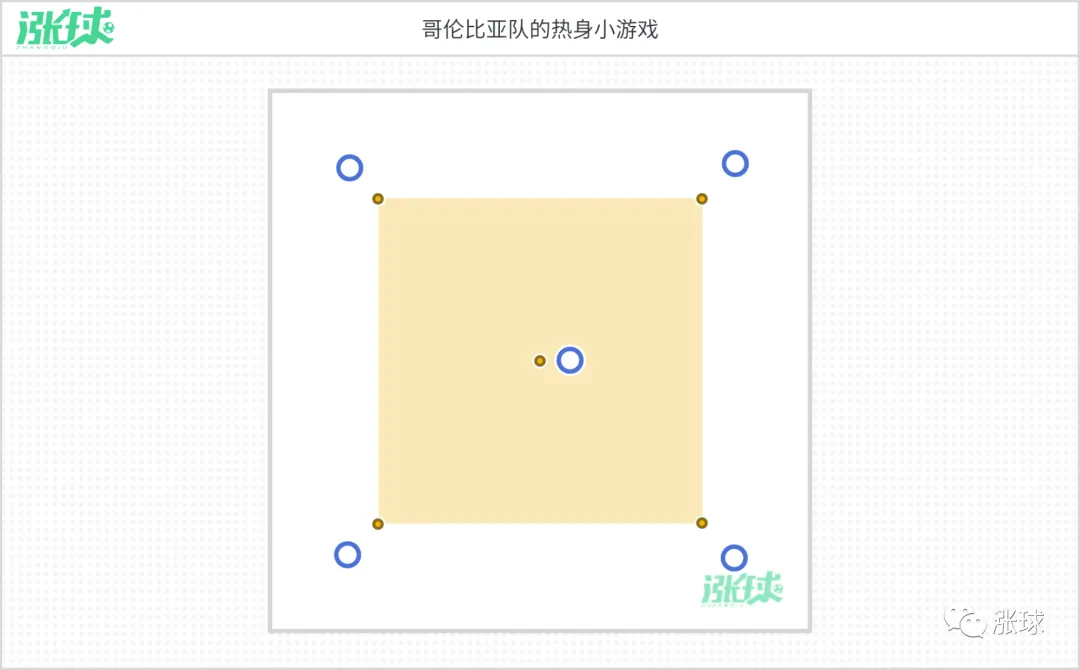 该热身训练有助于锻炼队员的爆发力、反应能力以及交流能力,既能达到激活身体又能调节训练气氛。