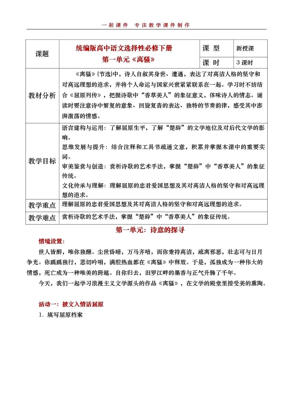 【一起语文选必下】| 《离骚》:课件+教学设计