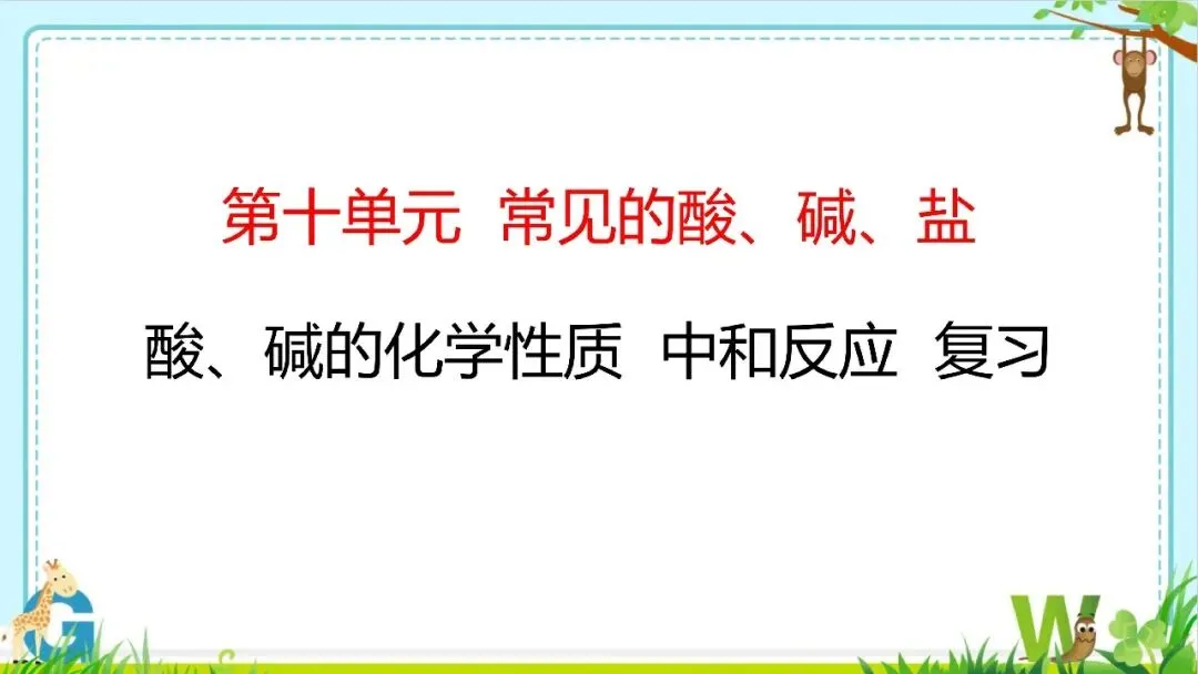 >【希沃课件】人教版九年级化学第10单元课题2酸、碱的化学性质中和反应复习教学欣赏!