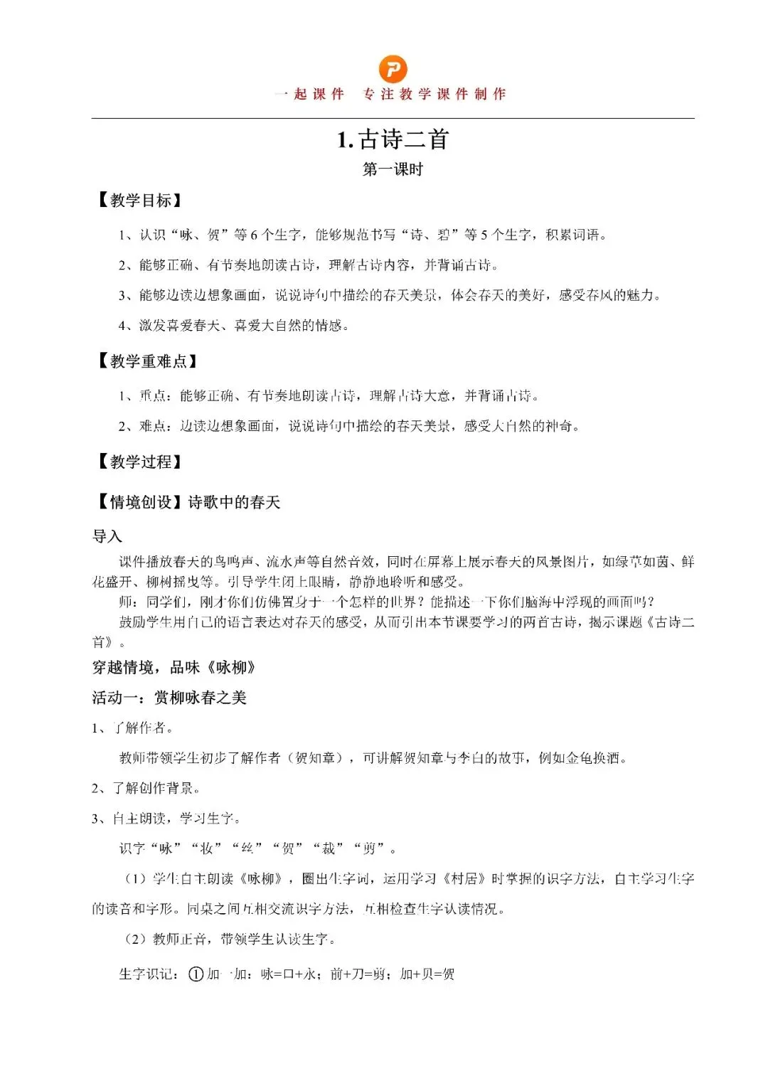 二下第一单元《古诗二首》 | 教学课件+教案+逐字稿