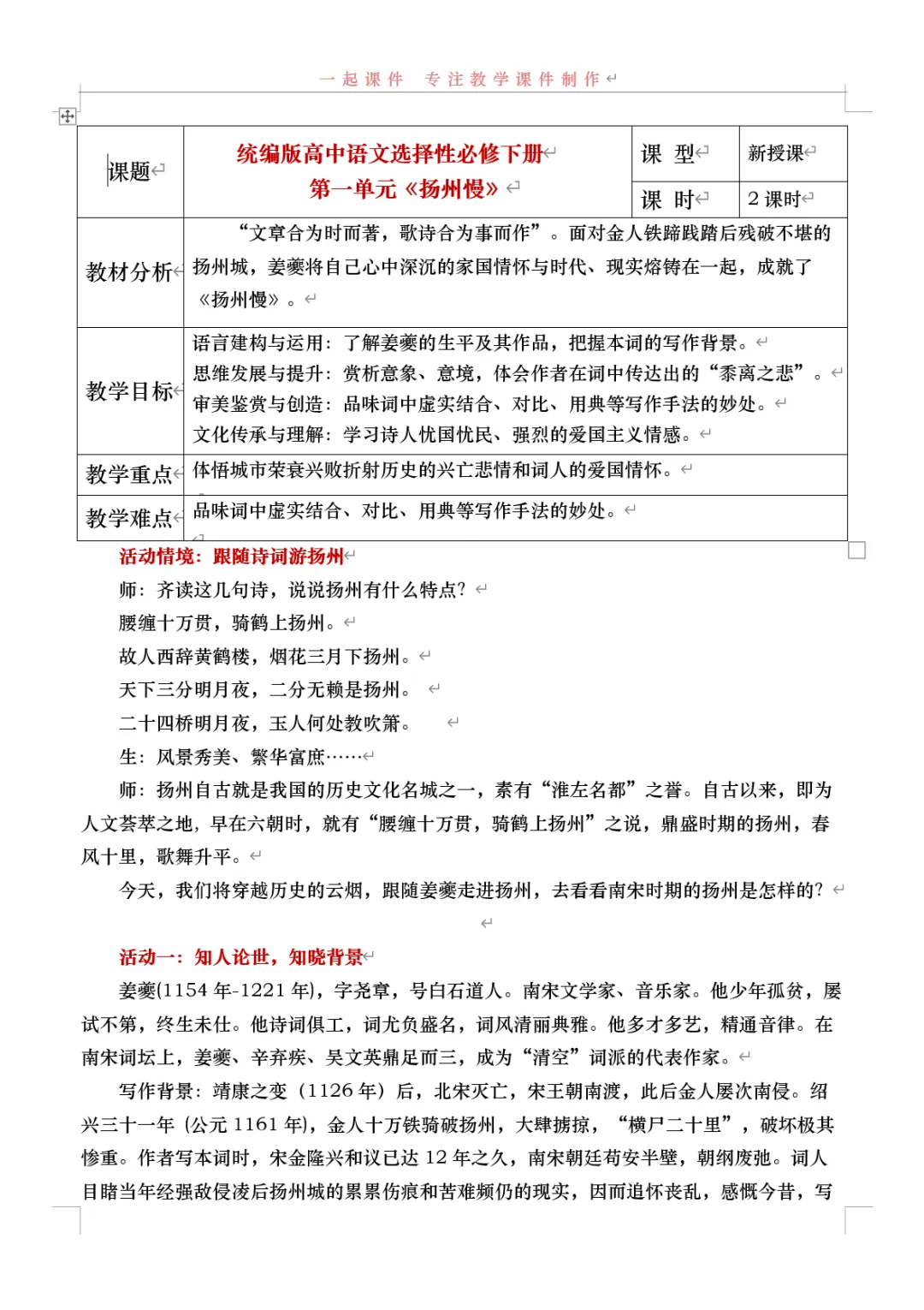 >【一起语文选择性必修下】|《扬州慢》:课件+教学设计