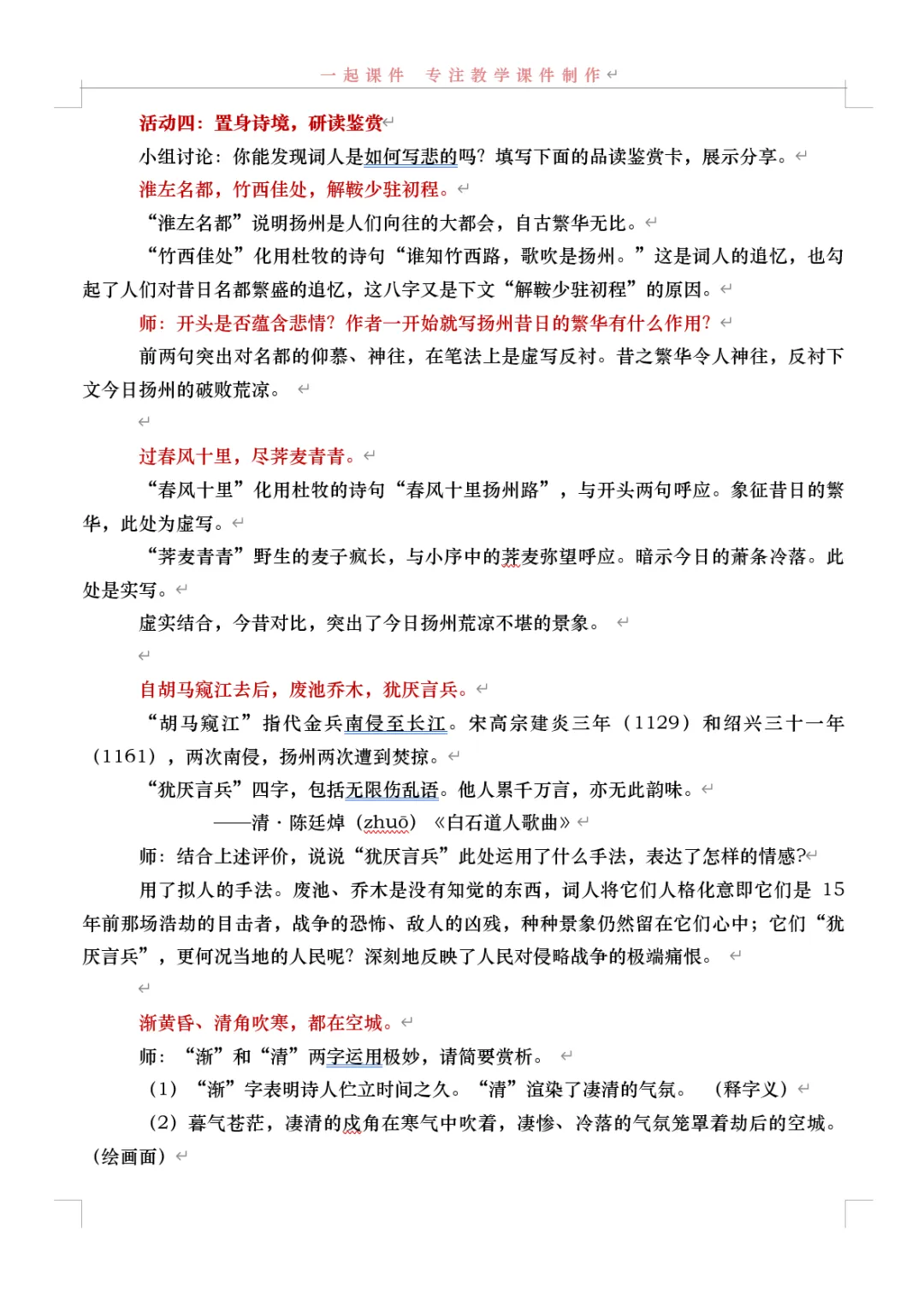 【一起语文选择性必修下】|《扬州慢》:课件+教学设计